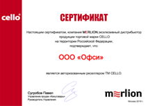 Компания MERLION подтверждает, что ООО «ОФСИ» является авторизованным реселлером TM CELLO