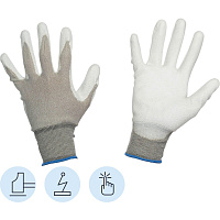 Перчатки рабочие защитные Manipula Specialist Микростатик MG-163 нейлоновые/медные волокна с полиуретановым покрытием серые (13 нитей, 15 класс, разме