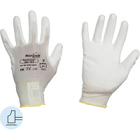 Перчатки рабочие защитные Manipula Specialist Микропол TPU-13/MG-162 нейлоновые с полиуретановым покрытием белые (13 нитей, 13 класс, размер 10 (XL))