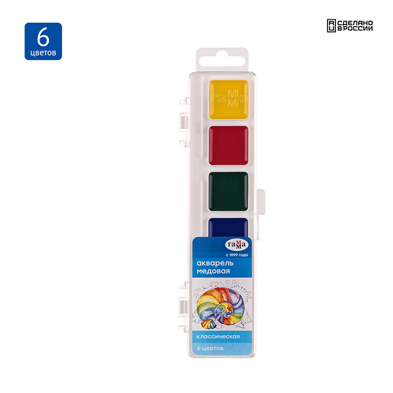 О товаре «Краски акварельные Гамма Классическая медовые 6 цветов»