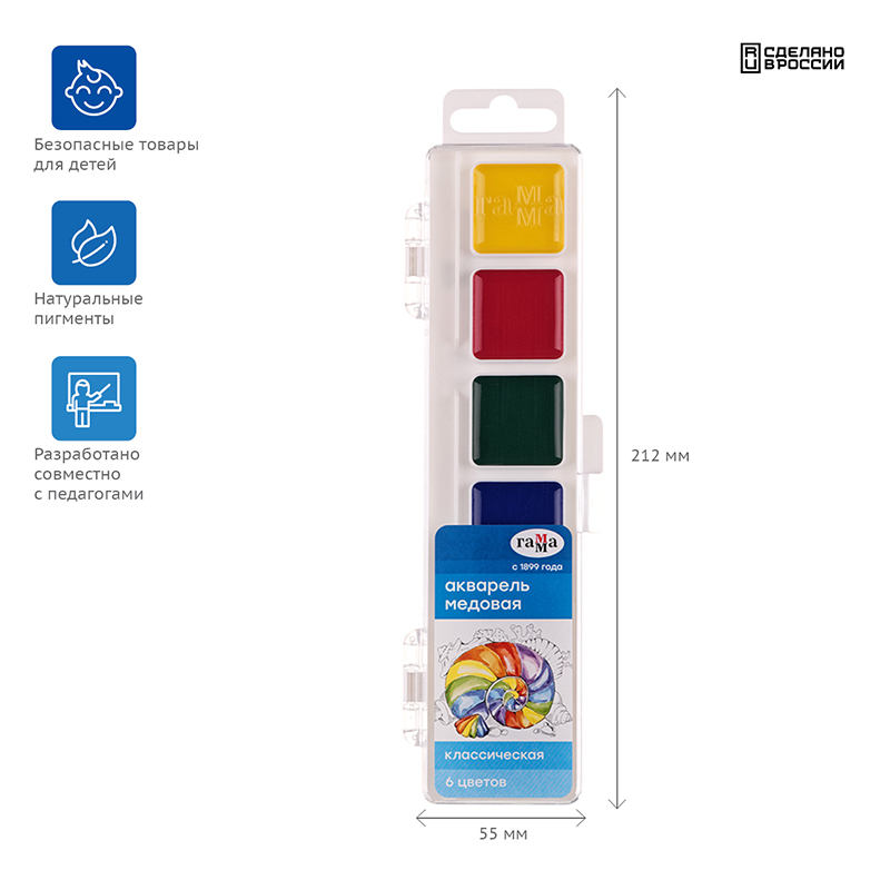 Медовая полусухая акварель серии "Классическая" разработана для использования в школе и дома.