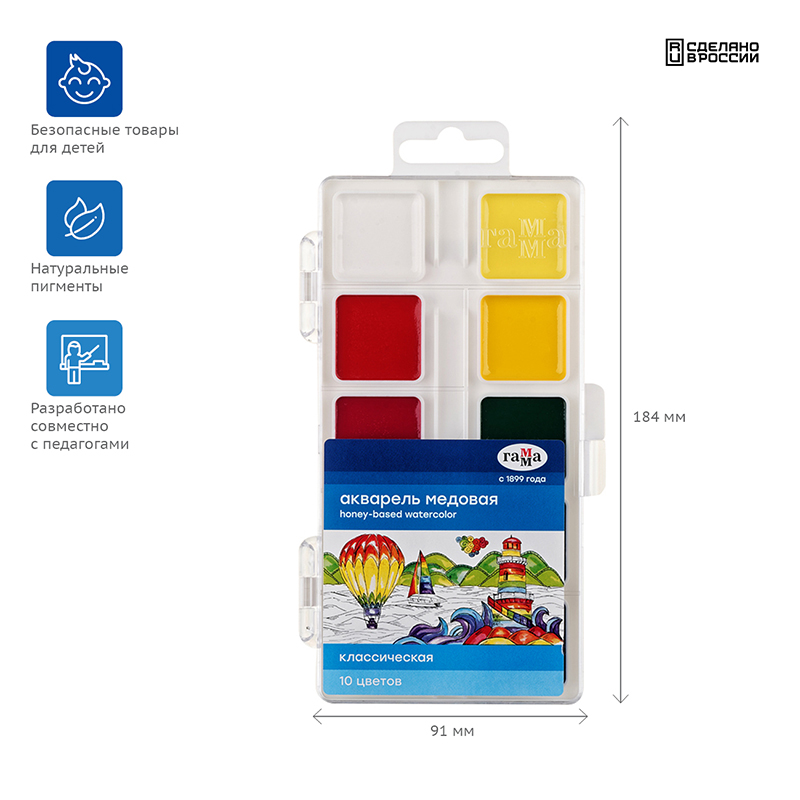 О товаре «Краски акварельные медовые Гамма Классическая 10 цветов»