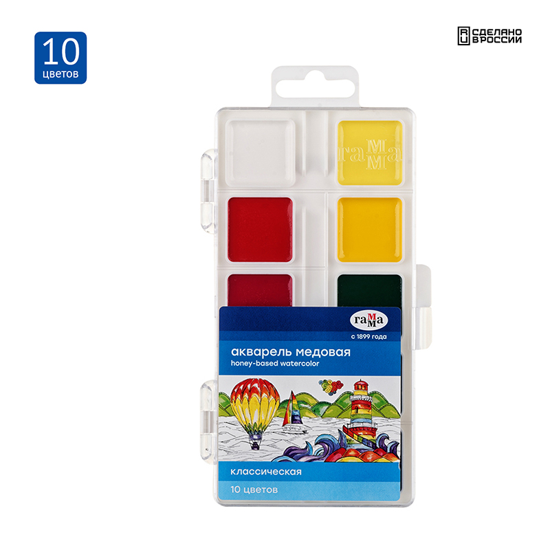 Краски акварельные медовые Гамма Классическая 10 цветов