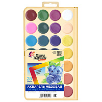Медовая полусухая акварель серии «Классическая» создана для творческих занятий в школе и дома. Цветовая палитра разработана совместно со специалистами Центра непрерывного художественного образования: естественные цвета акварели обучают правильному цветовосприятию окружающего мира. Краски изготовлены на основе органических пигментов и натурального связующего, отличаются прозрачностью, яркостью и чистотой цветов. Удобный пластиковый пенал: палитра для смешивания красок расположена на крышке, а кюветы с высокими бортиками и увеличенное расстояние между красками не позволяют цветам смешиваться в подложке во время рисования. Акварель легко смывается с рук и отстирывается с одежды.