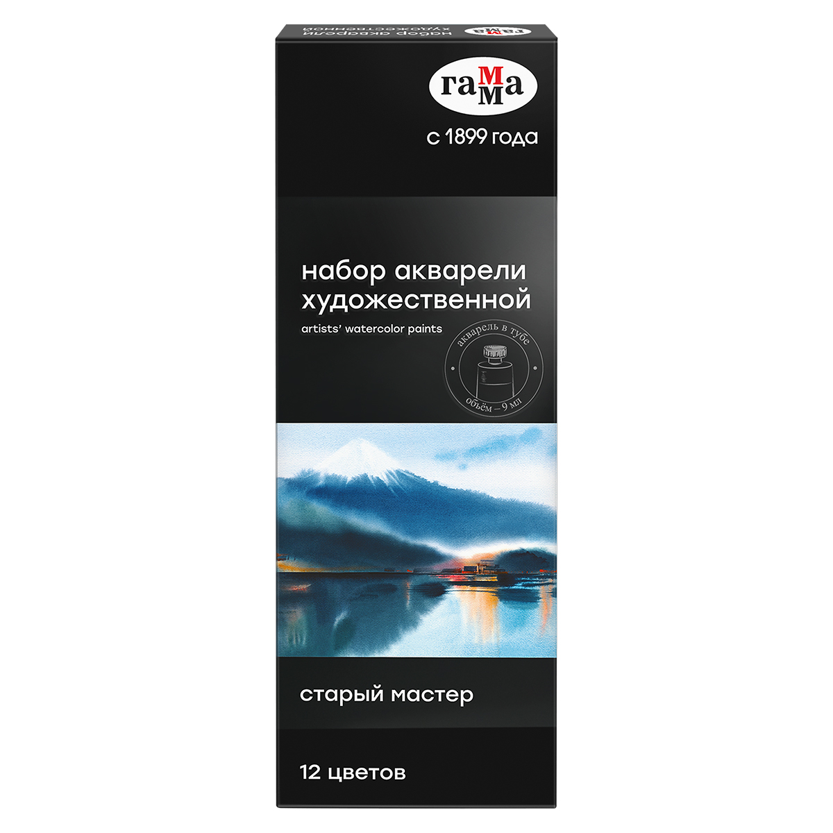 Акварель художественная Гамма "Старый мастер", 12цв., туба 9мл, картон. упаковка