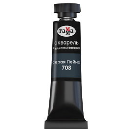 Профессиональная художественная акварель ГАММА серии «Старый мастер» упакована в тубу объёмом 9 мл, цвет – серая Пейна. Пигмент – P.Bk.7, P.B.15:0, P.V.23, номер цвета – 708.