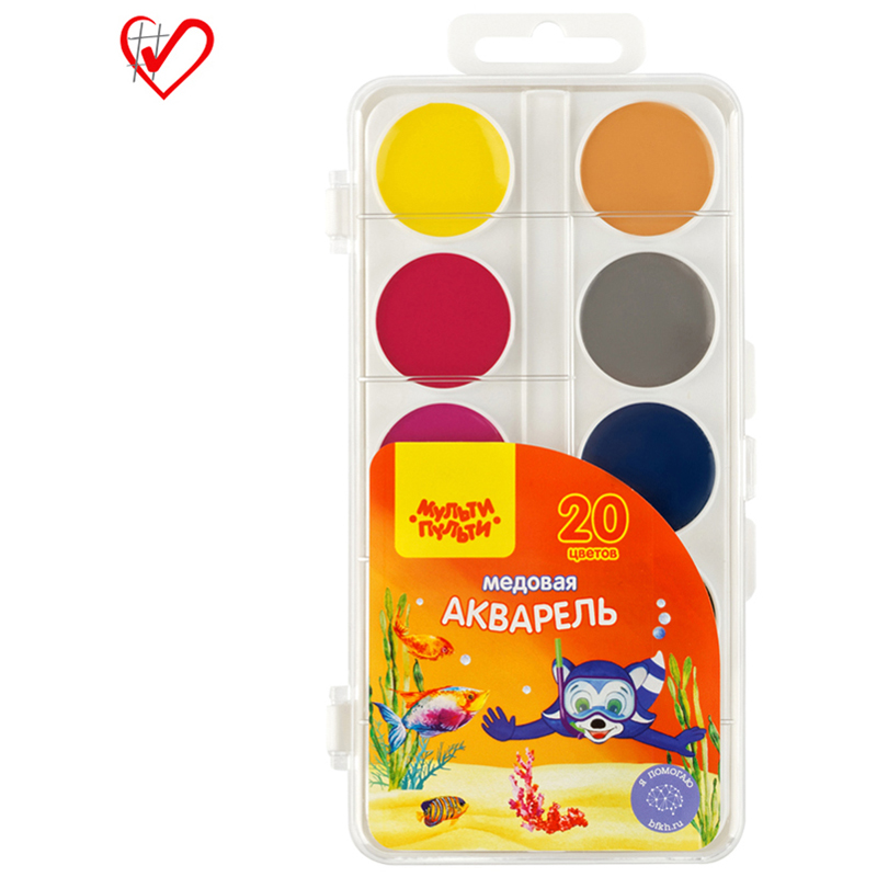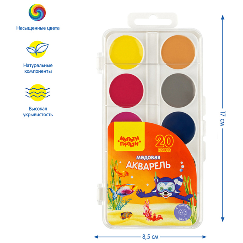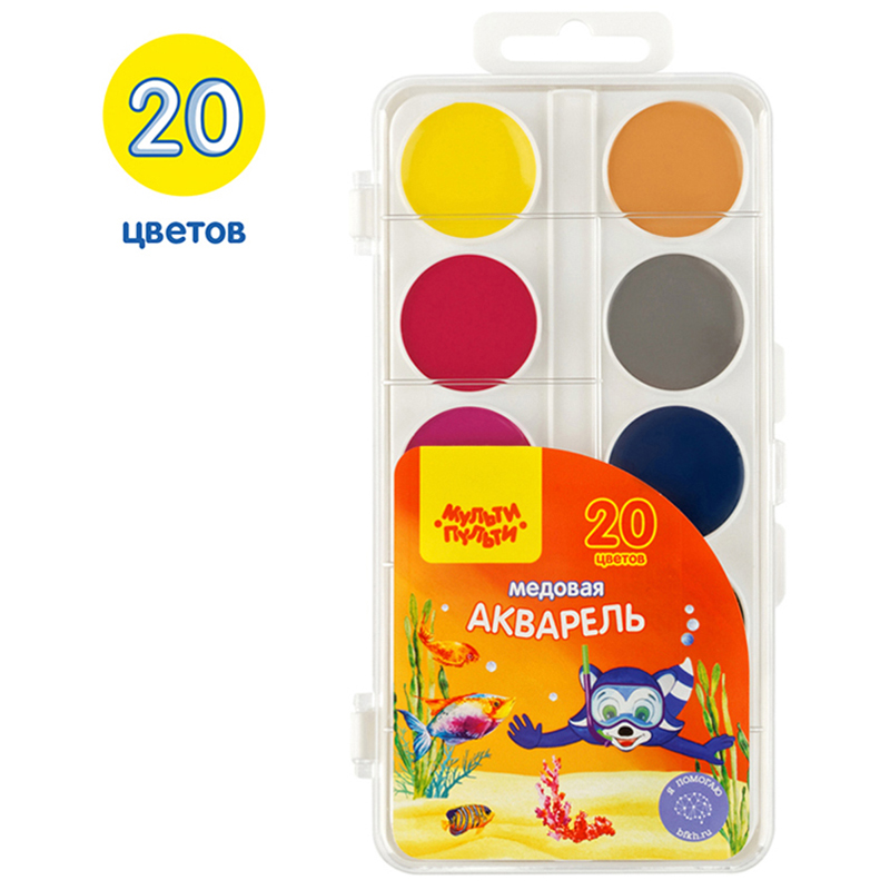 О товаре «Акварель Мульти-Пульти "Енот в Красном море", медовая, 20 цветов, без кисти, пластик, европодвес»