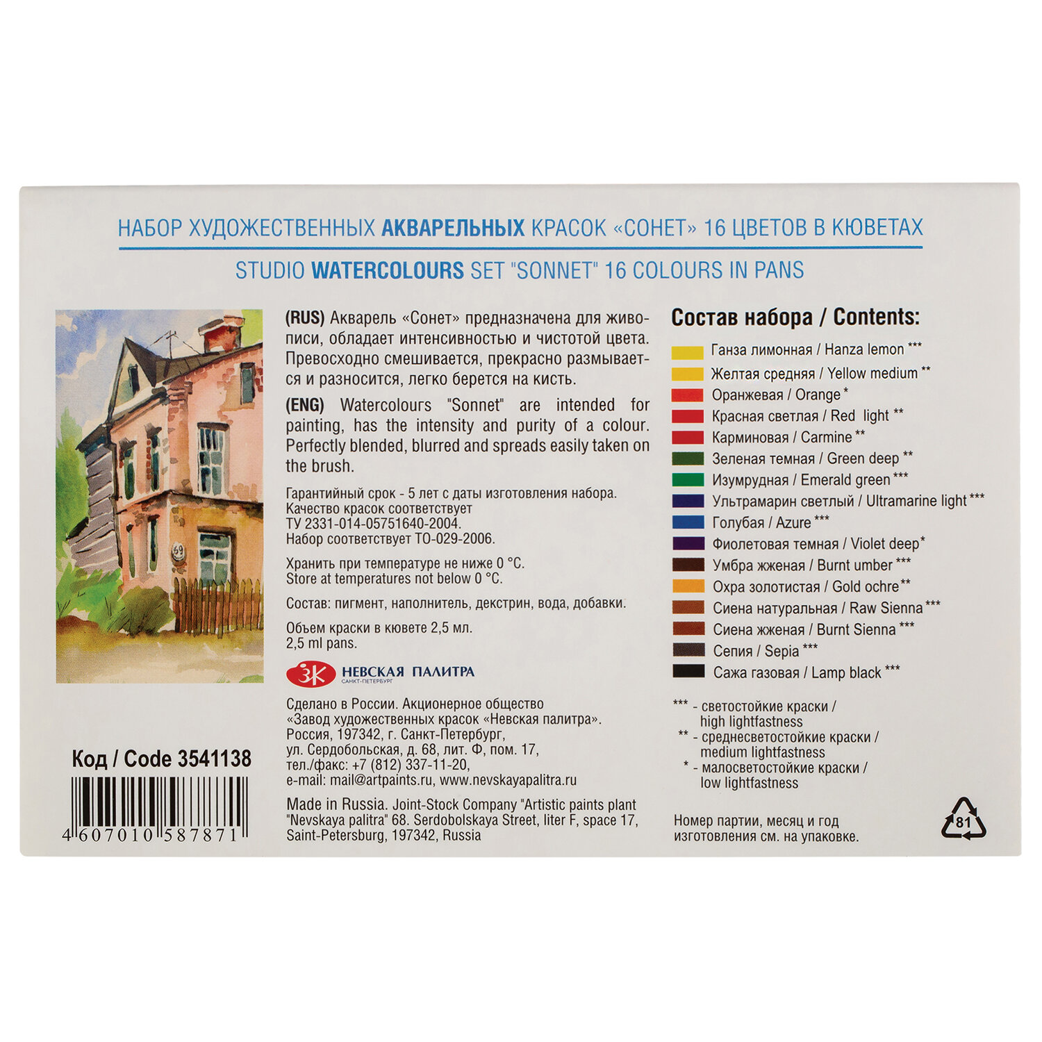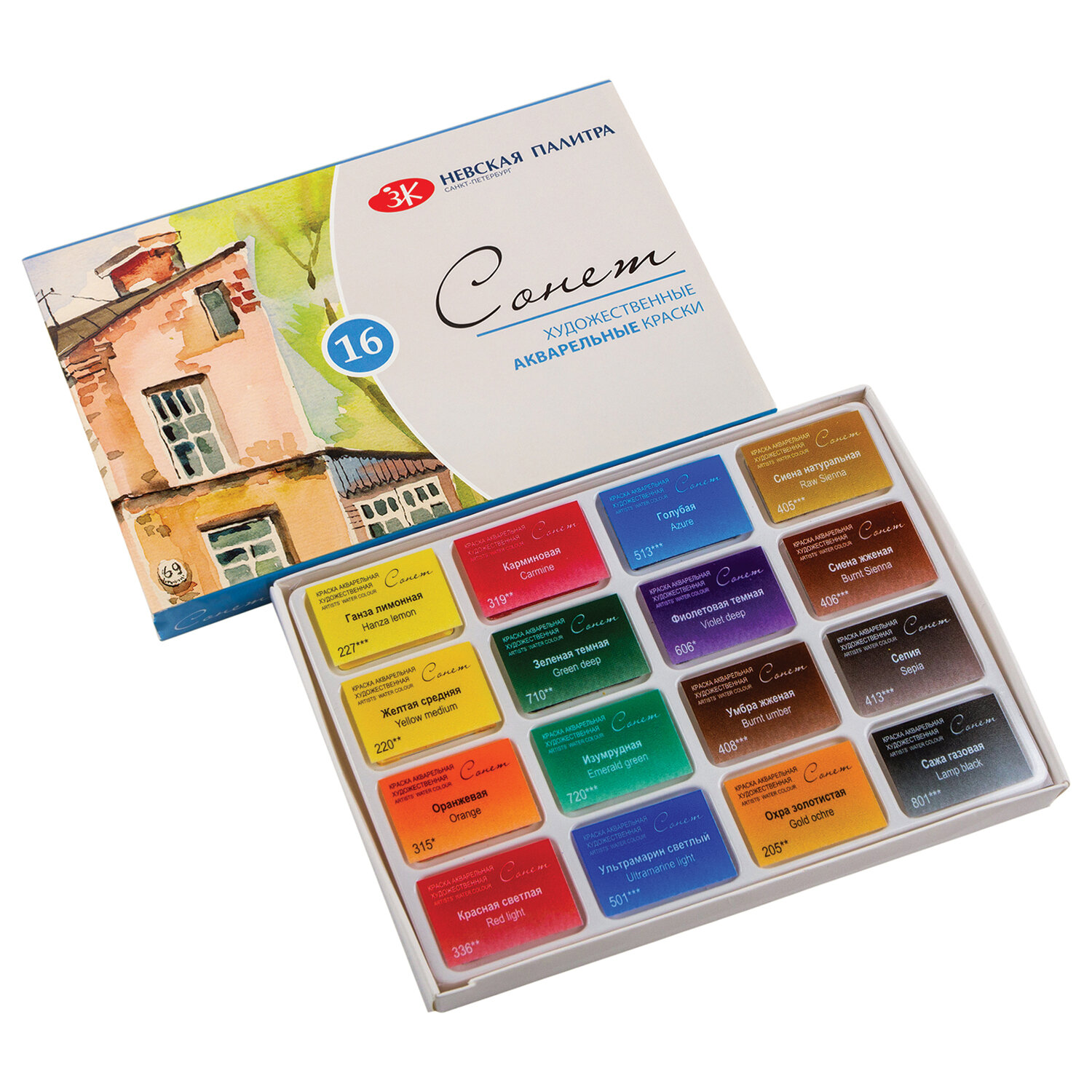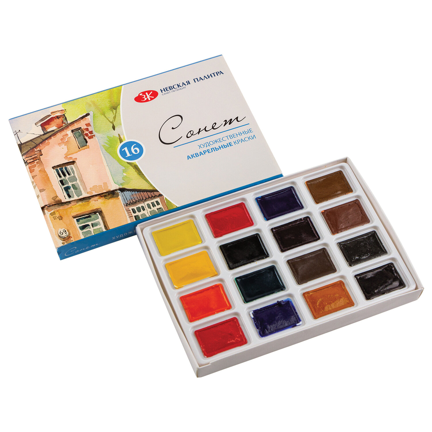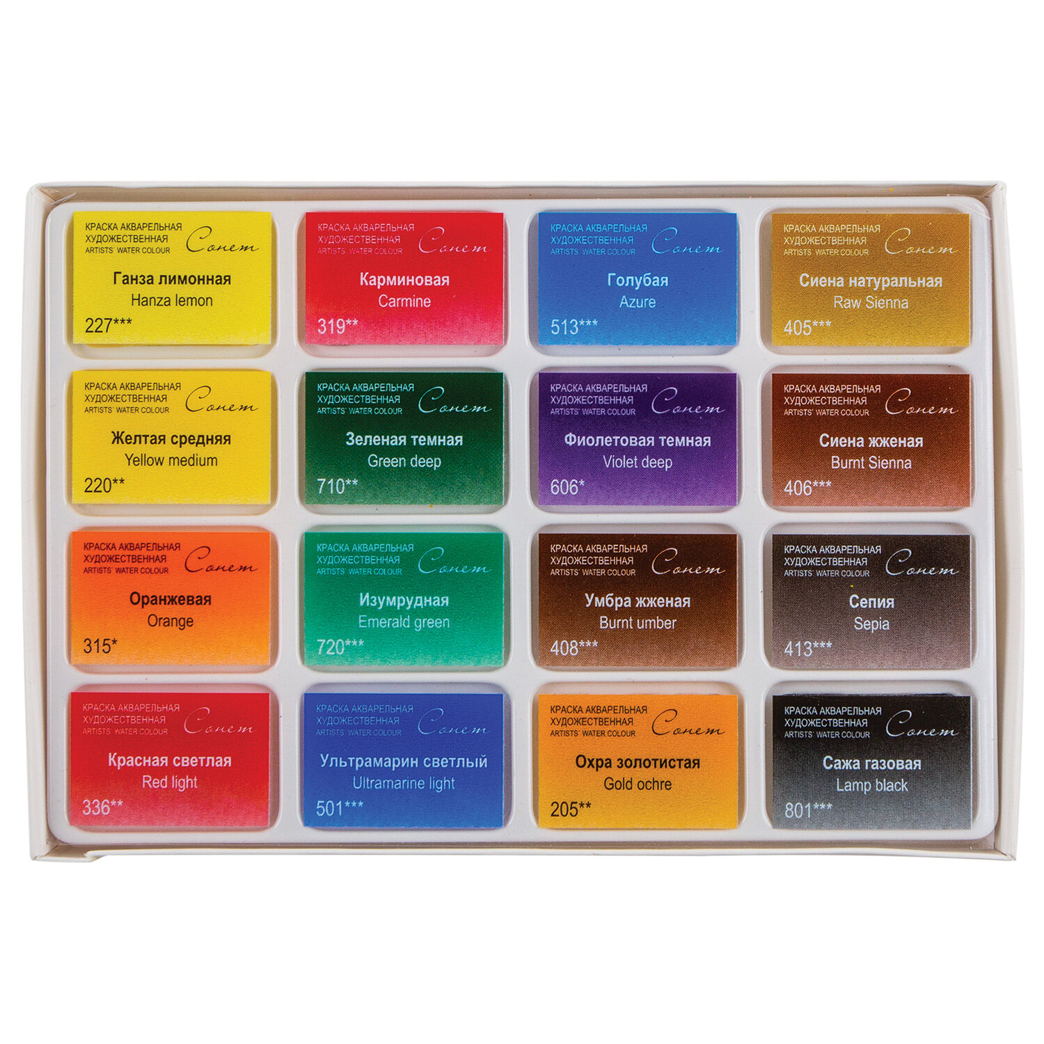 Краски акварельные Сонет набор 16 цветов по 2.5 мл в кюветах