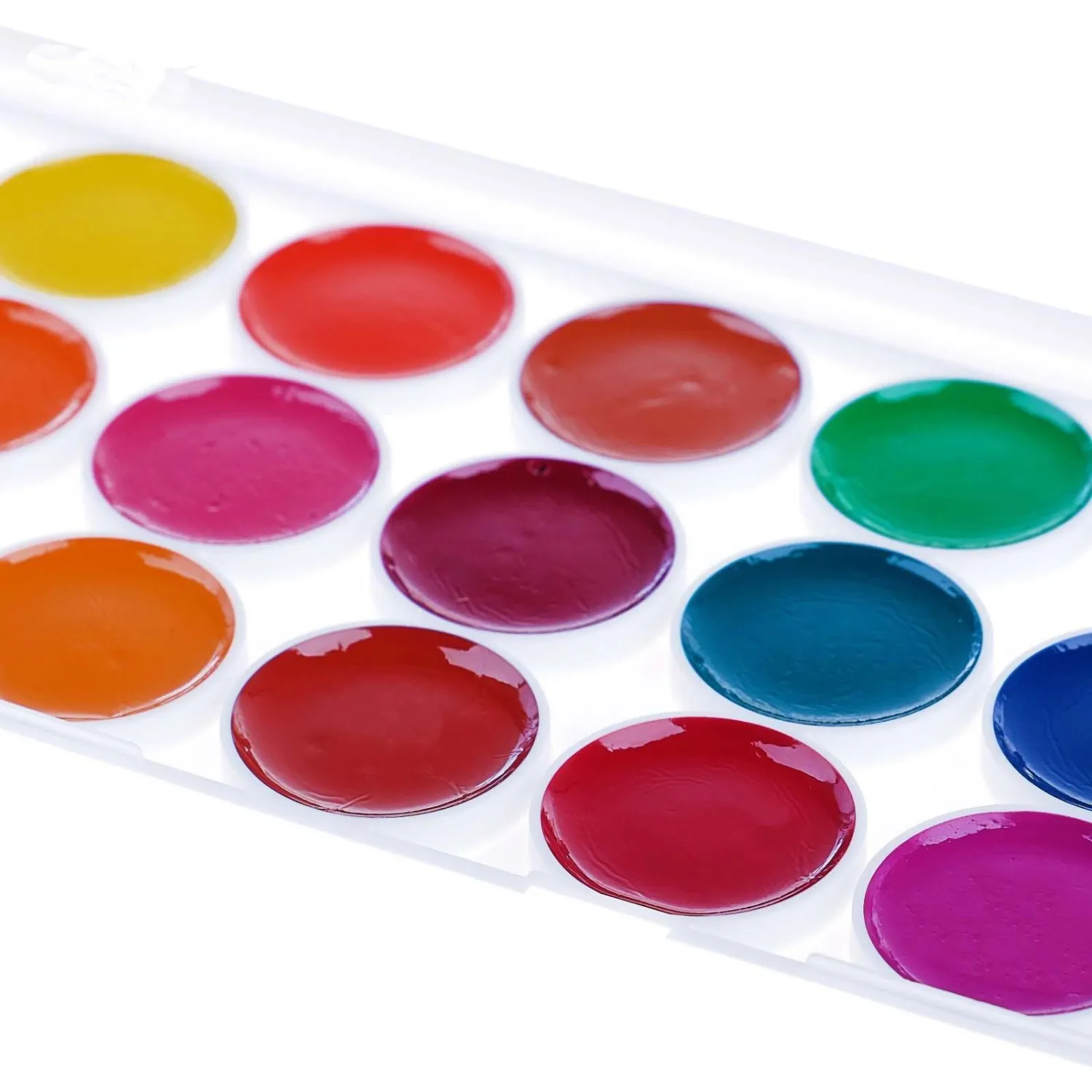 Акварель отличается чистыми и яркими оттенками, хорошо размывается водой, равномерно ложится на бумагу и сохраняет насыщенность цвета при смешивании. Прозрачная основа обеспечивает аккуратное нанесение без вкраплений, краска легко набирается на кисть и быстро смывается с рук и одежды.