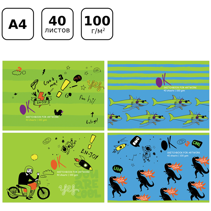 Альбом для рисования 40л., А4, на скрепке BG "Ты крутой!
