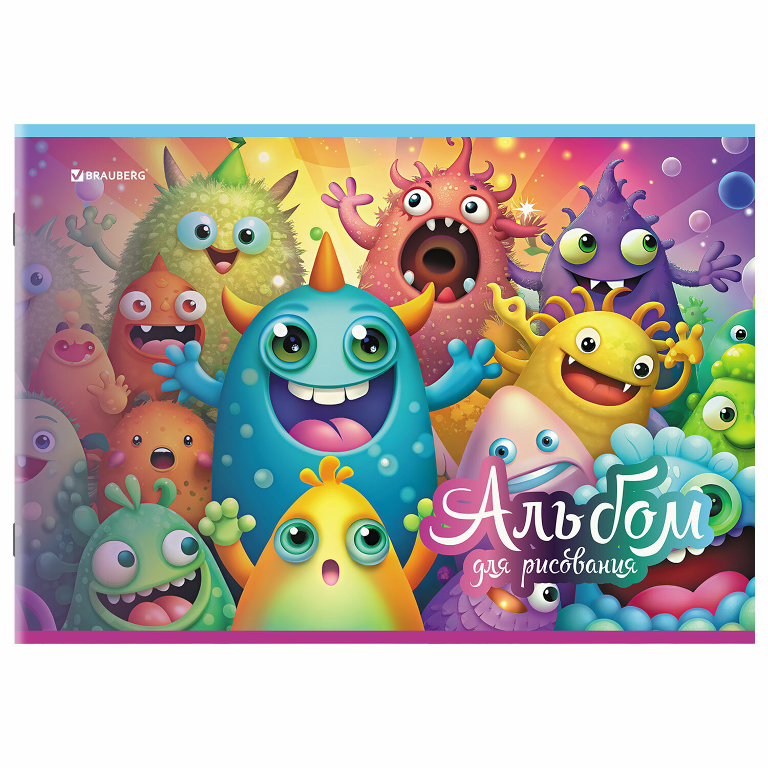 Альбом для рисования А4, 12 листов, скоба, обложка картон, BRAUBERG, 203х288 мм, "МИКС-1", 107101