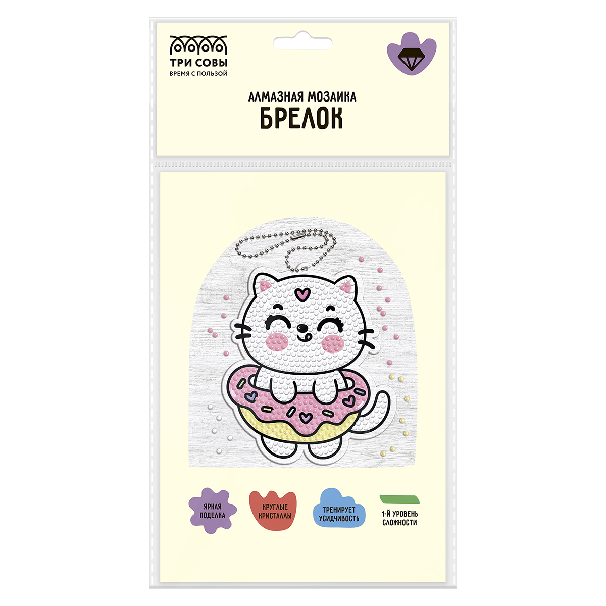 О товаре «Алмазная мозаика, брелок ТРИ СОВЫ "Мяу-кошечка", пакет с европодвесом»