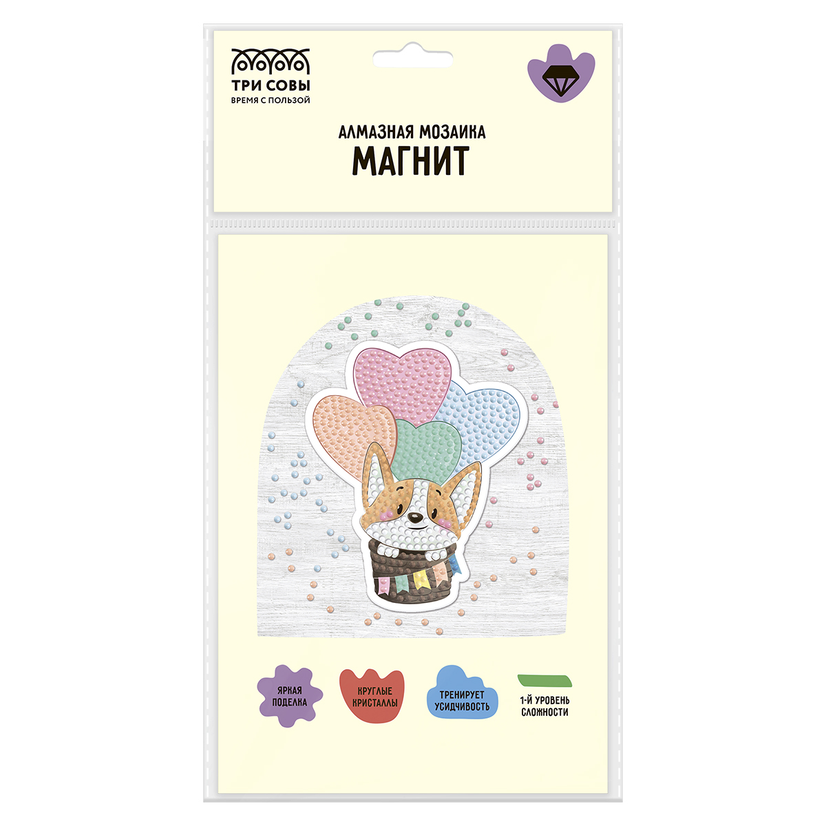 Набор «ТРИ СОВЫ» для создания магнита «Корги-путешественник» из алмазной мозаики станет отличным подарком для детей. Это увлекательное занятие, которое развивает мелкую моторику, усидчивость и цветовосприятие ребенка.