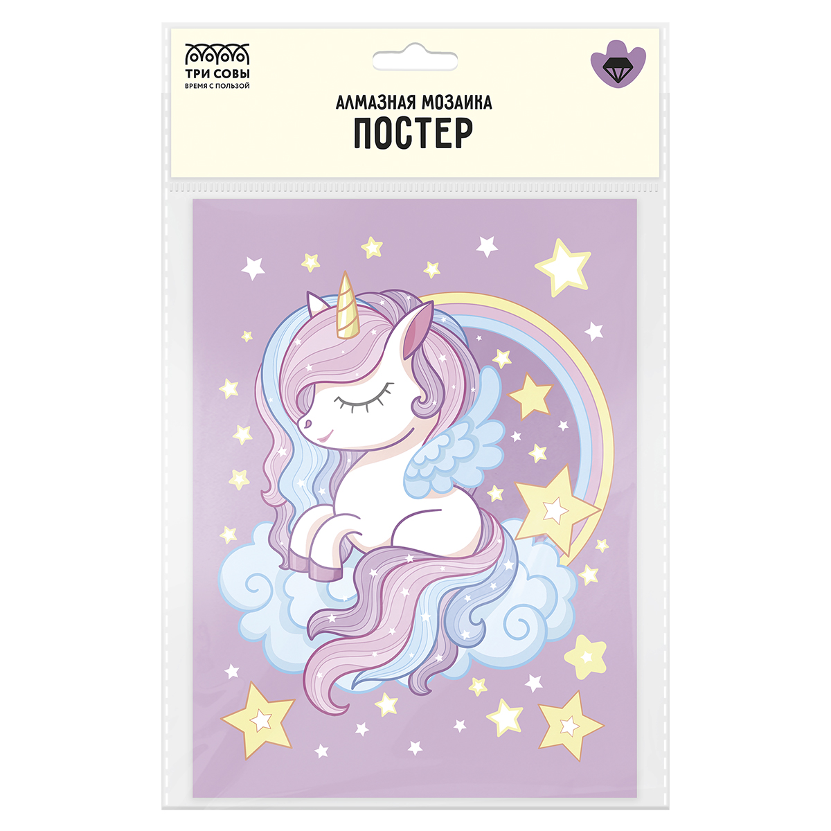О товаре «Алмазная мозаика, постер ТРИ СОВЫ "Единорог-звездочка", пакет с европодвесом»