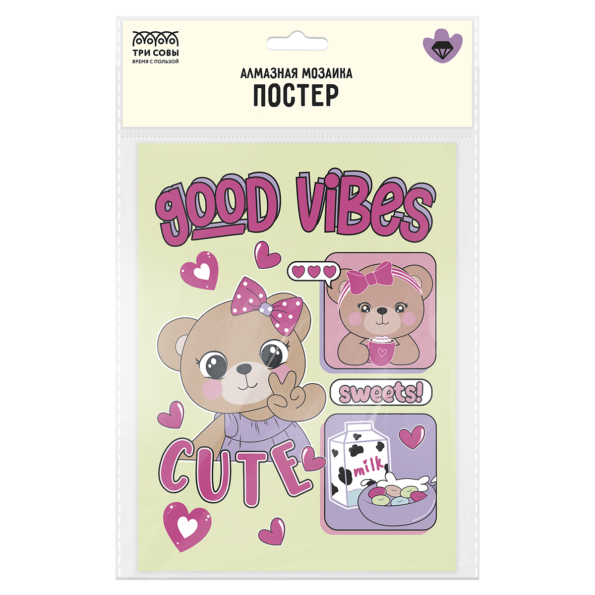 О товаре «Алмазная мозаика, постер ТРИ СОВЫ "Мишка-милашка", пакет с европодвесом»