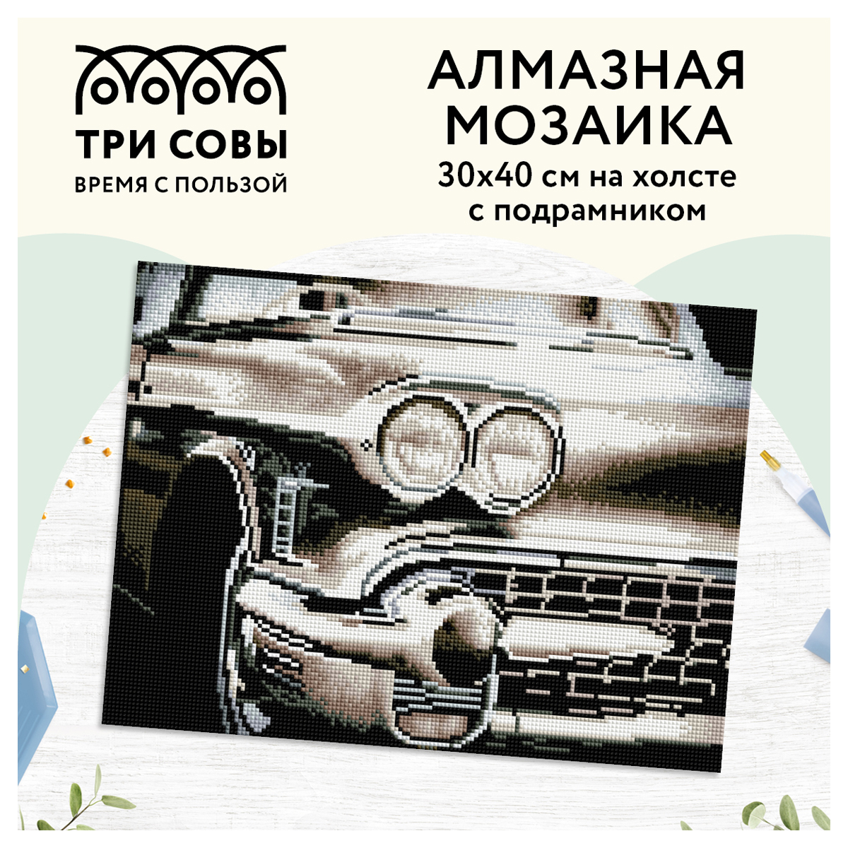 О товаре «Алмазная мозаика ТРИ СОВЫ "Винтажный автомобиль", 30*40см, холст на деревянном подрамнике, картонная коробка с пластиковой ручкой»