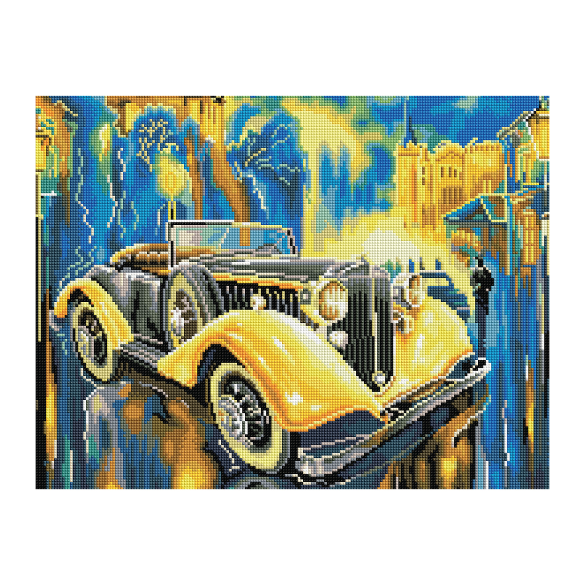 Алмазная мозаика ТРИ СОВЫ "Желтый ретроавтомобиль", 40*50см, холст на деревянном подрамнике, картонная коробка с пластиковой ручкой