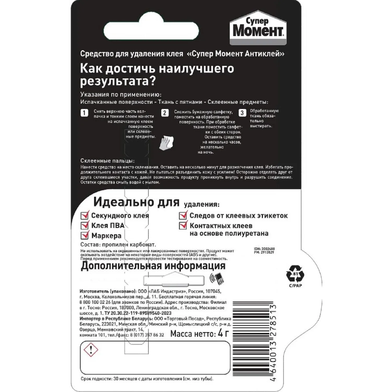 О товаре «Антиклей Супер Момент средство для удаления клея 5 г»