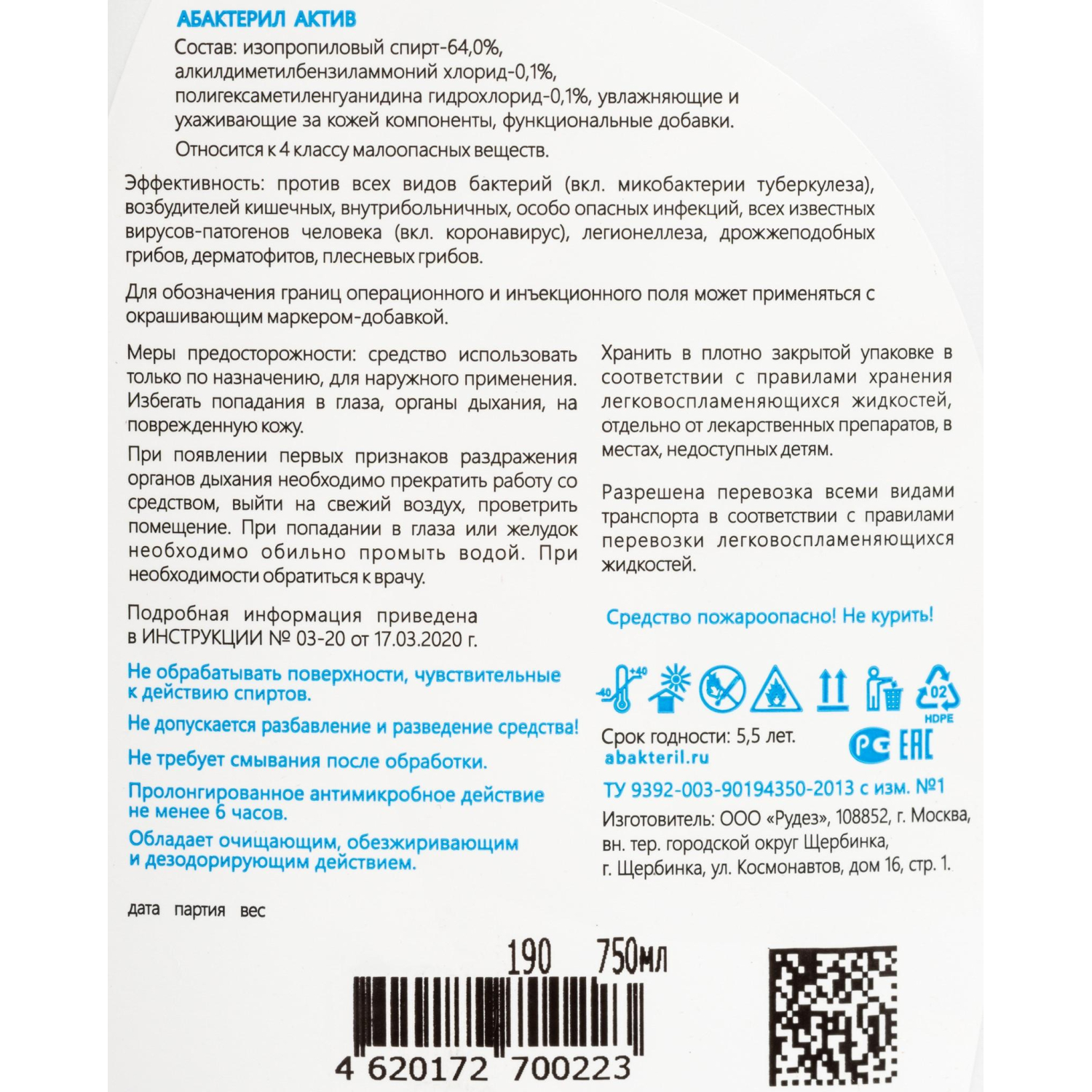 О товаре «Антисептик кожный Абакстерил Актив спиртовой 750 мл»