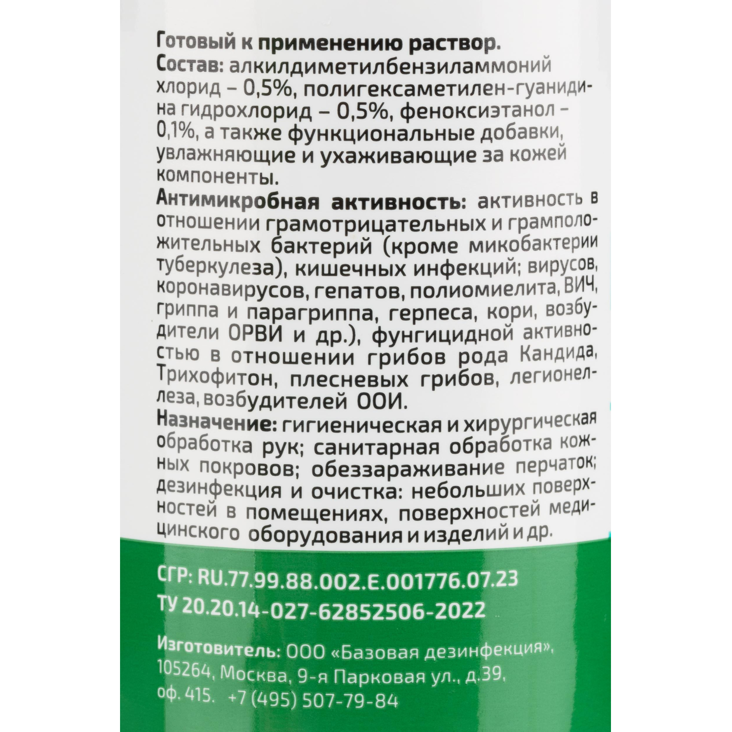 Средство обладает антимикробной активностью в отношении грамположительных (кроме микобактерий туберкулёза) и грамотрицательных бактерий (в т.ч. Legionella pneumophila, L. micdadei, L. longbeuchae, L. dumoffii и L. Bozemanil), устойчивых штаммов Pseudomonas aeruginosa, кишечных инфекций — Escherichia coli, Staphylococcus aureus, Salmonella typhimurium, метициллин-резистентного стафилококка и ванкомицин-резистентного энтерококка; вирулицидной активностью (в том числе в отношение коронавирусов, рино-, норо-, рото-, аденовирусов, вирусов) энтеральных и парентеральных гепатитов (в т. ч. гепатита А, В, С, Д), полиомиелита, энтеровирусов Коксаки, ЕСНО, ВИЧ-инфекций, вирусов гриппа и парагриппа человека, вирусов атипичной пневмонии (SARS), вирусовгерпеса, кори, возбудителей ОРВИ, вирусов свиного гриппа H1N1 и птичьего гриппа H5N1, цитомегаловирусной инфекции, вируса Эбола ит.д.); фунгицидной активностью в отношении грибов рода Candida, Trichophyton, плесневых грибов, в т.ч. Aspergillus brasiliensis, Mucor spp; возбудителей особо опасных инфекций (чумы, холеры, туляремии). Средство обладает пролонгированным антимикробным действием в течение 5 часов. Обладает хорошими моющими и дезодорирующими свойствами, не оставляет следов на обработанной поверхности. Не требует смывания после обработки.