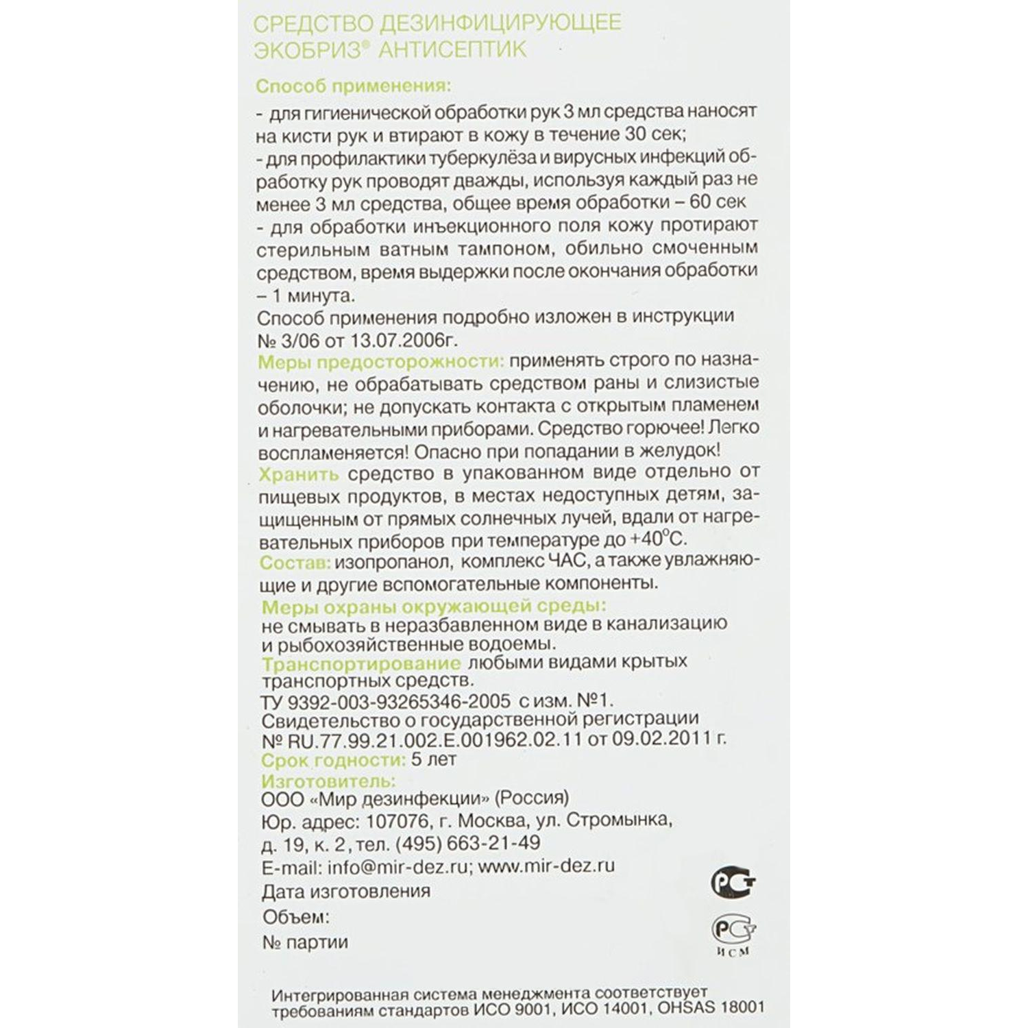 О товаре «Антисептик кожный Экобриз спиртовой 1 л»