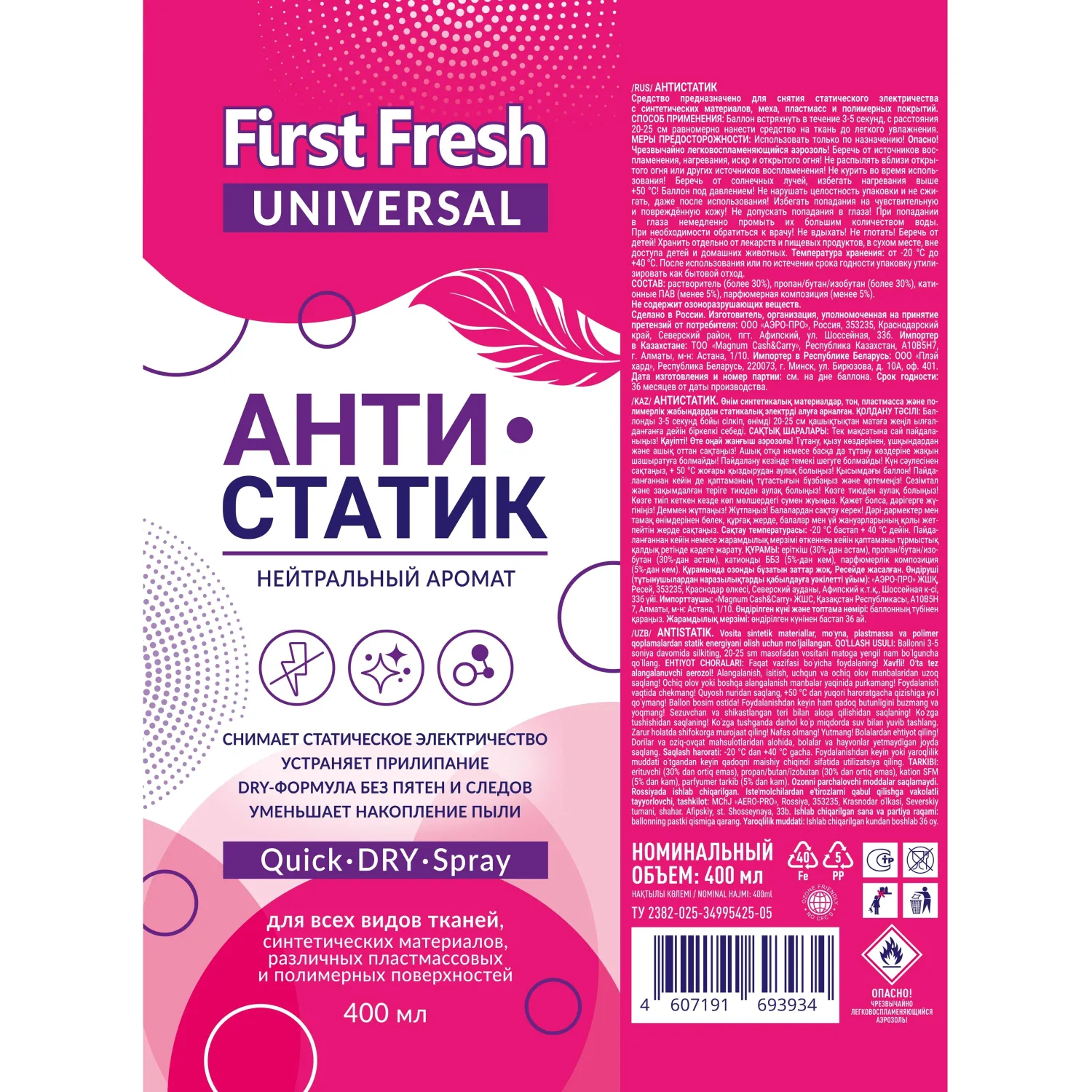 О товаре «Антистатик First Fresh 400 мл»