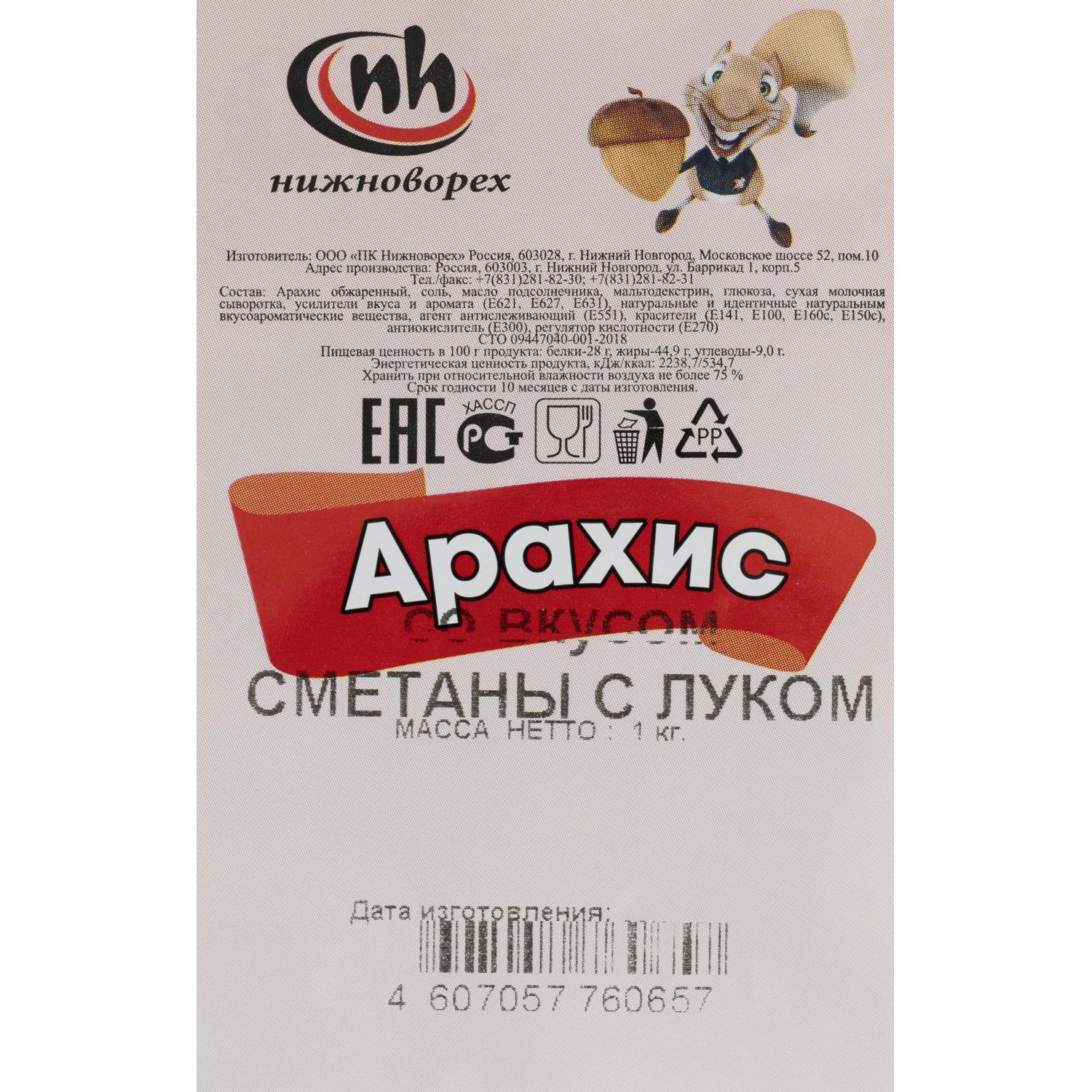 О товаре «Арахис обжаренный со вкусом сметаны с луком, 1кг»