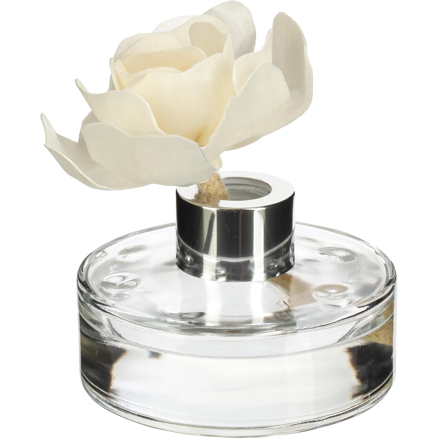 Аромадиффузор украшен декоративным цветком из рисовой бумаги. Выполненный вручную цветок в утончённом стеклянном флаконе с парфюмерной жидкостью. Стильный дизайн этого модного ароматического аксессуара украсит любой интерьер.