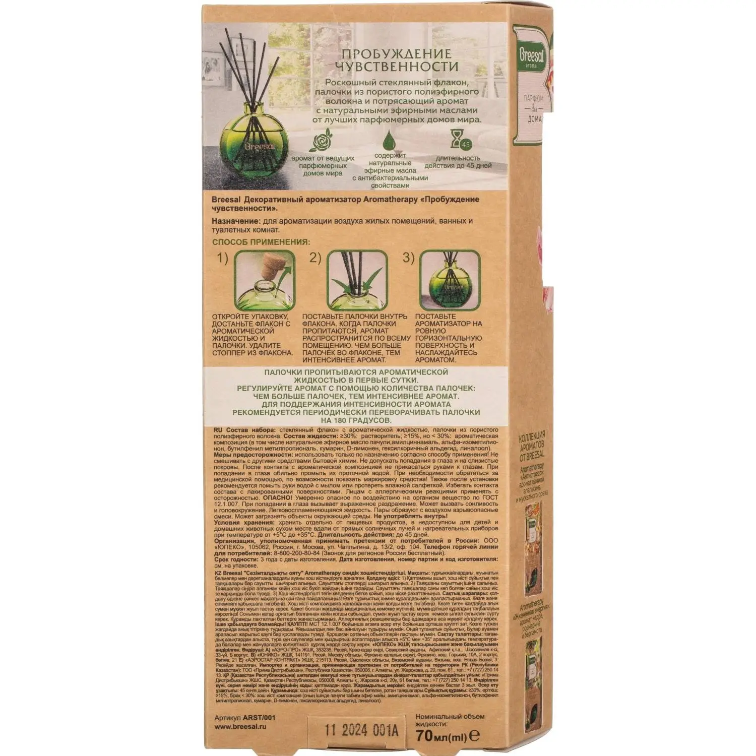 О товаре «Аромадиффузор Breesal Пробуждение чувственности пачули/пион/гуава 70 мл»