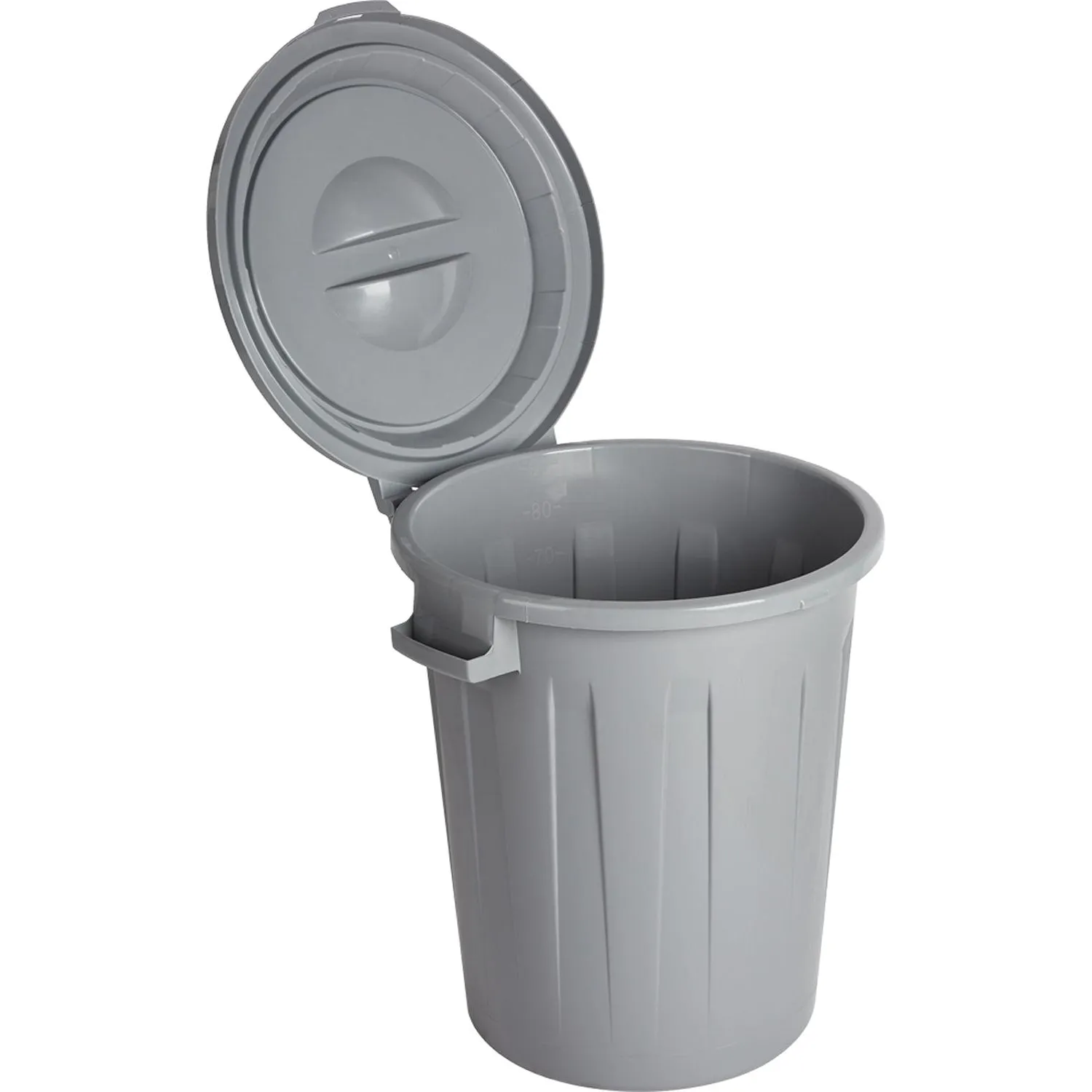 Пластиковый бак для отходов ёмкостью 90 литров выполнен из безопасного пищевого пластика серого цвета. Бак вместителен, прочен, устойчив к ударам, легко очищается, не сохраняет нежелательных запахов. Съёмная крышка бака обеспечивает плотное закрывание. Для удобства переноски есть ручки. Изделие можно использовать как ёмкость для хранения овощей, фруктов, сыпучих продуктов, воды, на дачных участках для хранения поливочной воды, мусора, компоста, в качестве ёмкости для сыпучих строительных материалов. Внутри бака имеется мерная шкала.