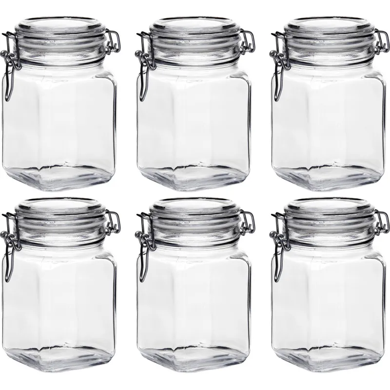 Банка с металлической клипсой Pasabahce Кремлин стеклянная 1050 мл (6 штук в упаковке)