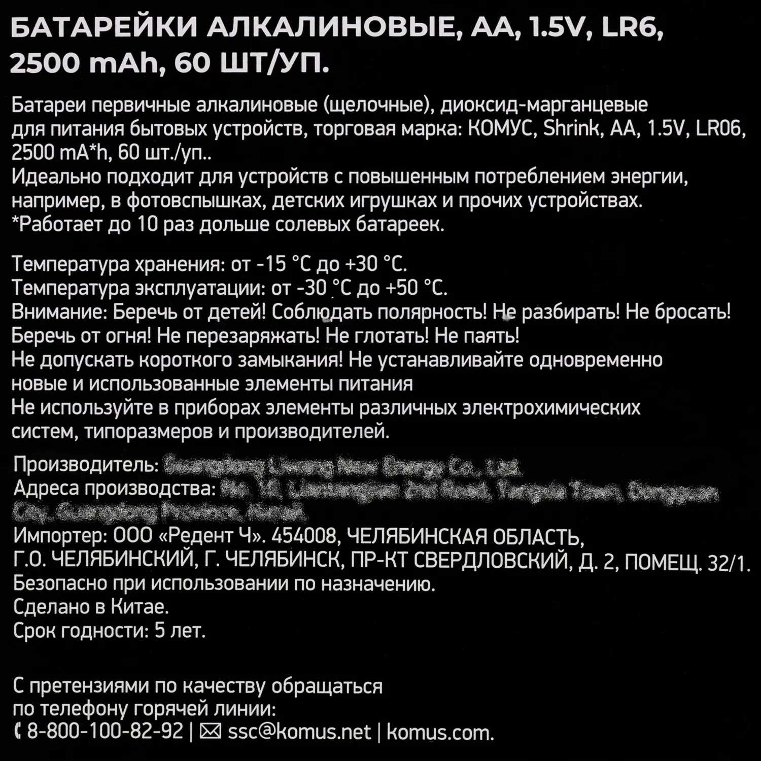 О товаре «Батарейка Комус AA/LR06 Shrink 60шт/уп»