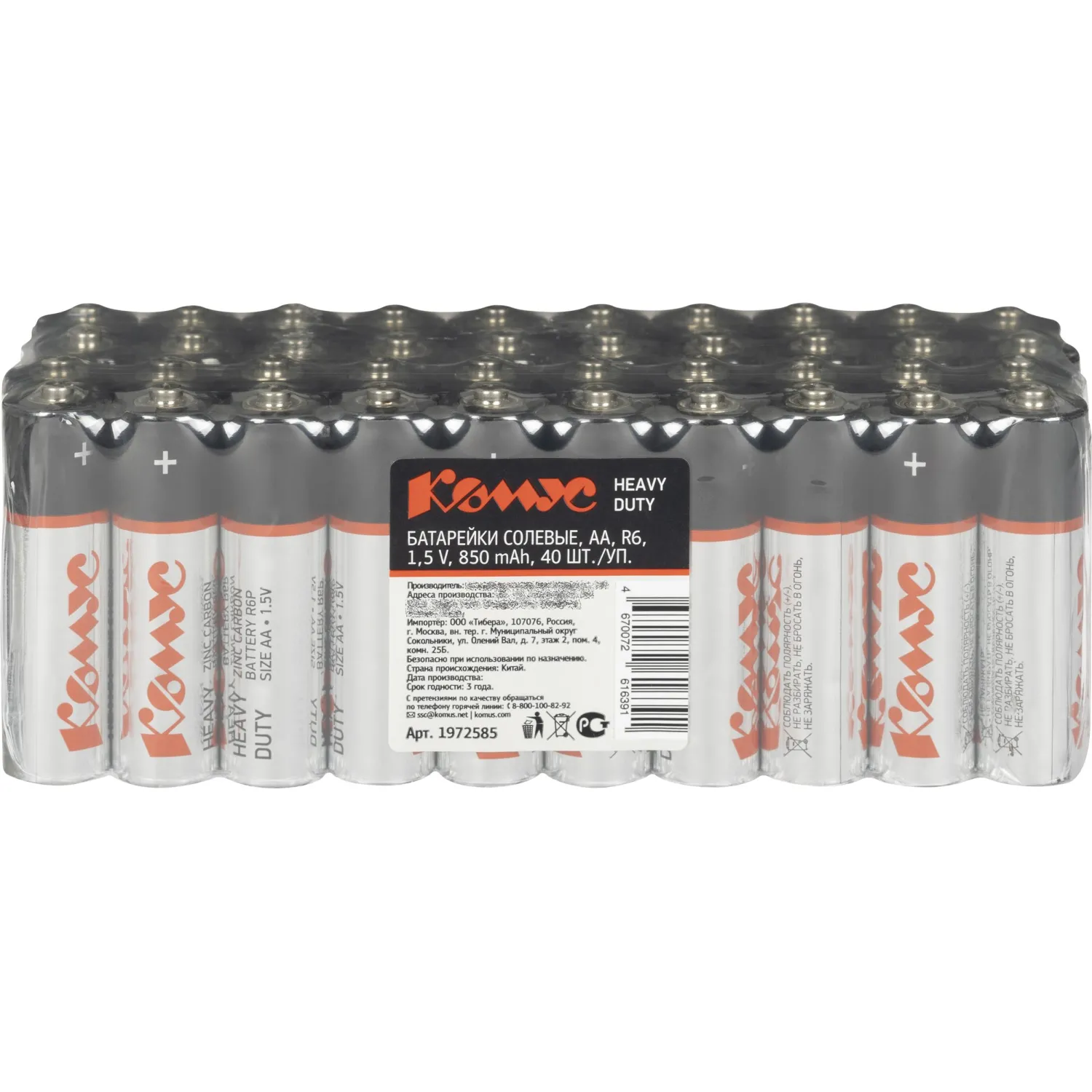 О товаре «Батарейка AA пальчиковая Комус (40 штук в упаковке)»