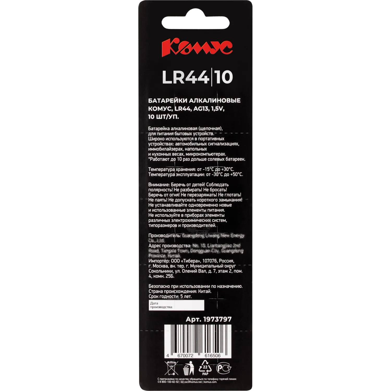 О товаре «Батарейка Комус, алкалин, LR44/AG13/A76F, бл/10шт»