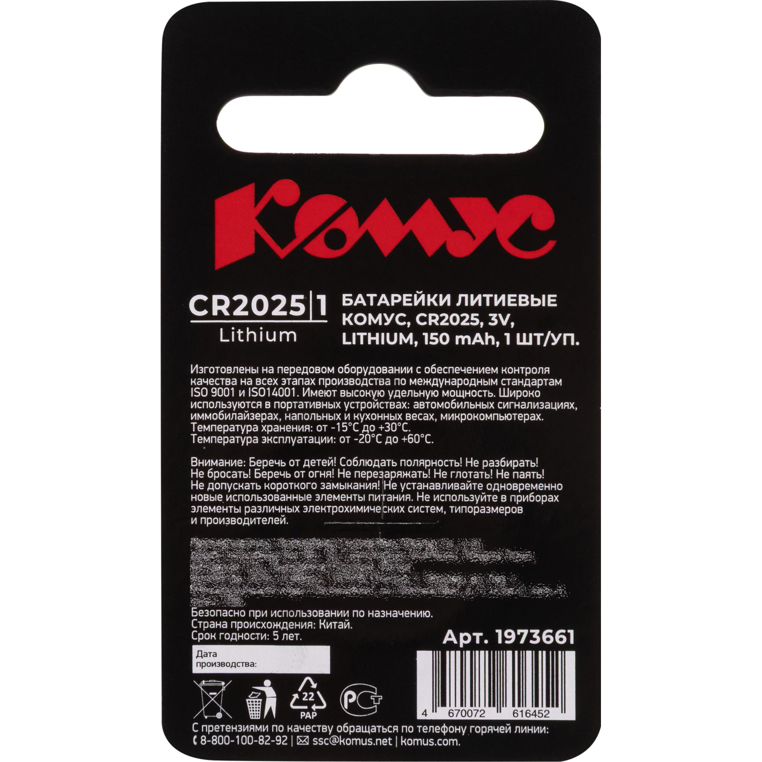 Батарейка Комус, литиевая, CR2025, бл/1шт