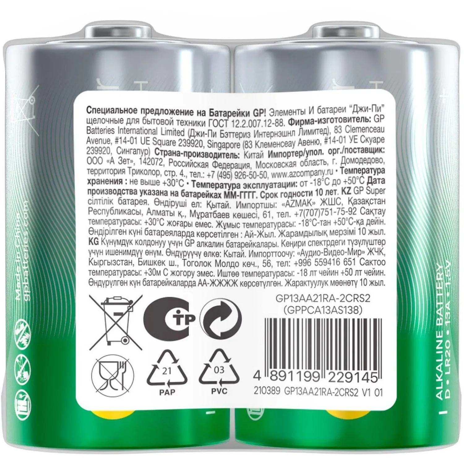 Батарейка D (LR20) GP Super (2 штуки в упаковке)