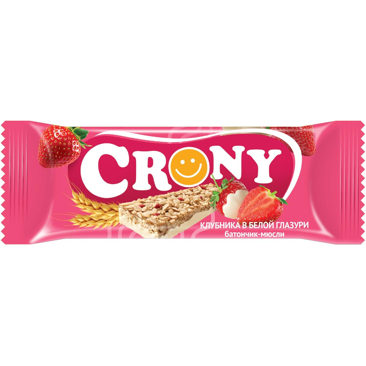 Батончик мюсли Crony клубника в белой глазури 50 г (12 штук в упаковке)