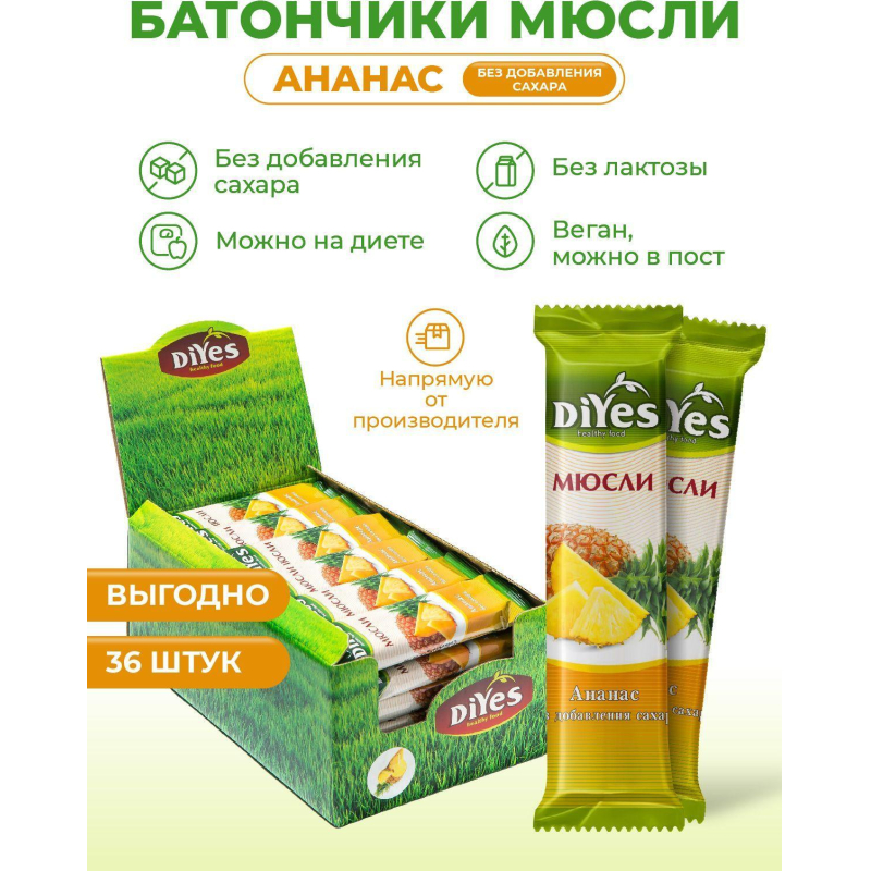 Батончик мюсли DiYes ананас без сахара (36 штук по 25 г)