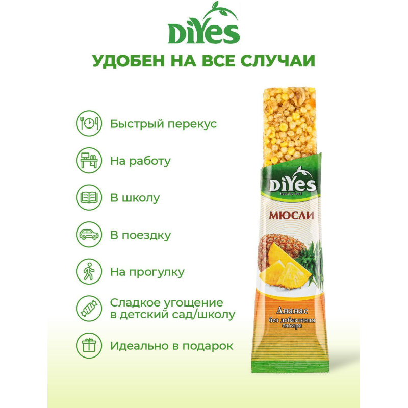 О товаре «Батончик мюсли DiYes ананас без сахара (36 штук по 25 г)»