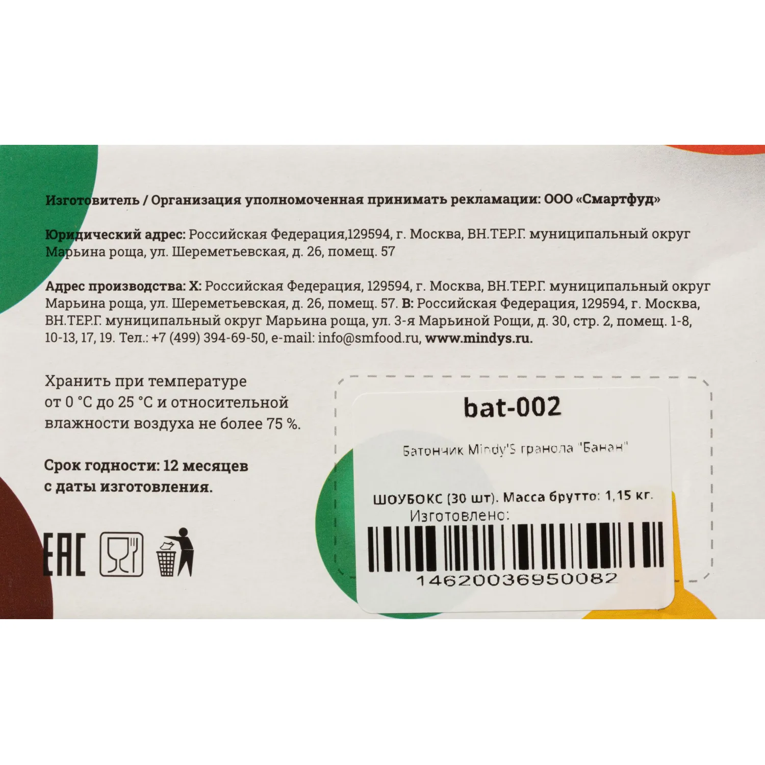 Любые вопросы по товару «Батончик мюсли Mindy's с бананом 35 г (30 штук в упаковке)» вы можете задать нашим продавцам по телефонам +7 (495) 215-28-10, 8 (800) 555-3604, электронной почте info@ofsi.ru и в скайпе ofsi.ru.