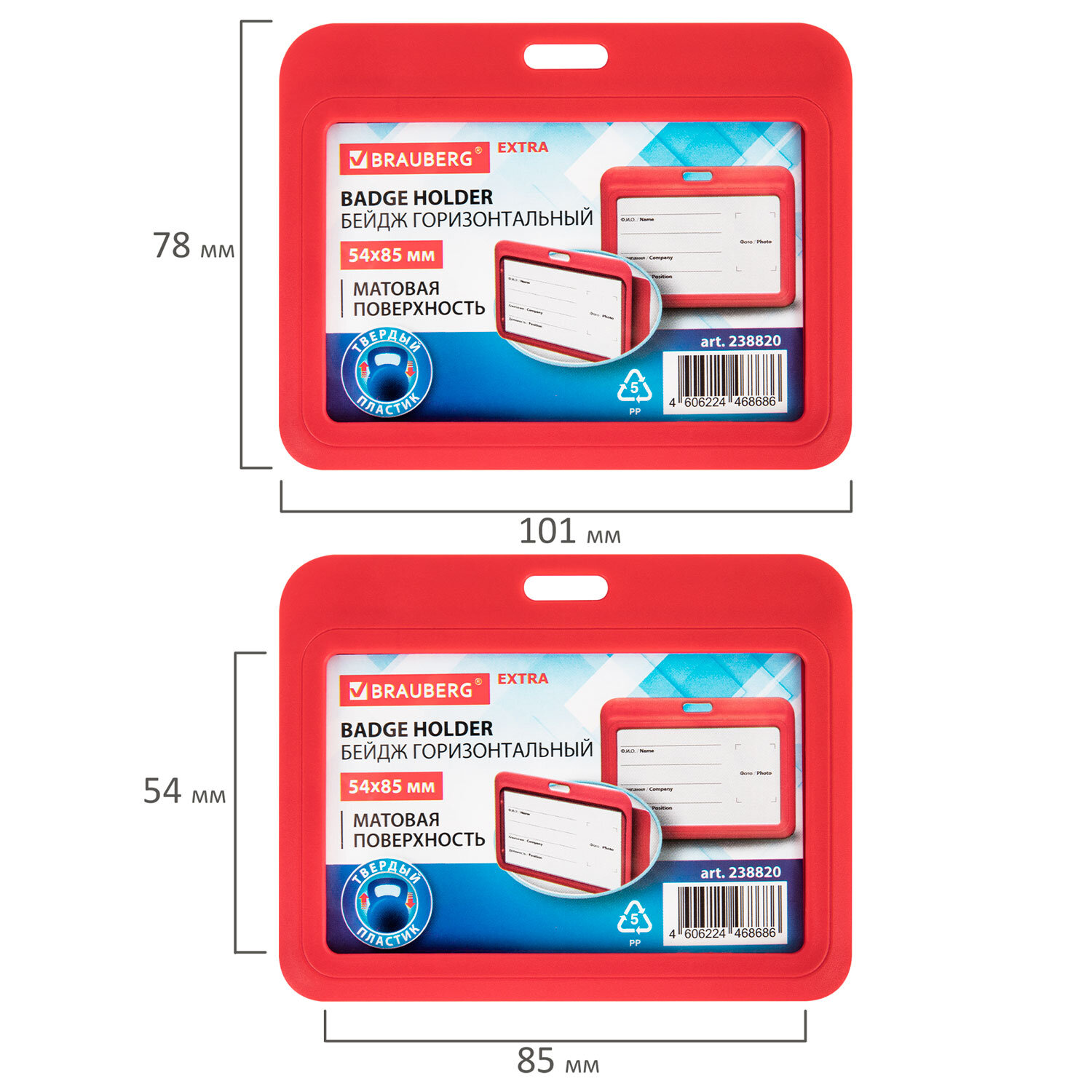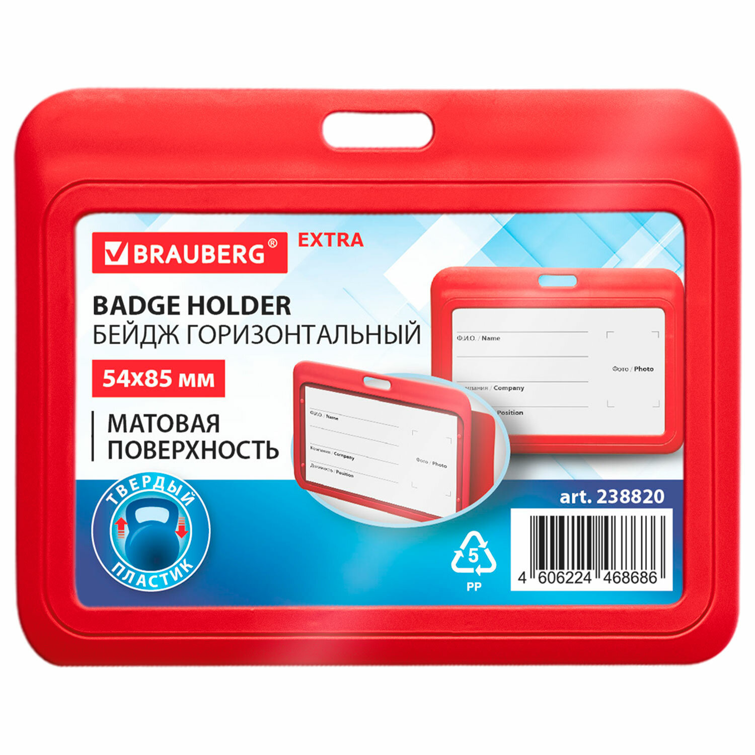 О товаре «Бейдж горизонтальный (54х85 мм), красный, МАТОВАЯ ПОВЕРХНОСТЬ, BRAUBERG EXTRA, 238820»