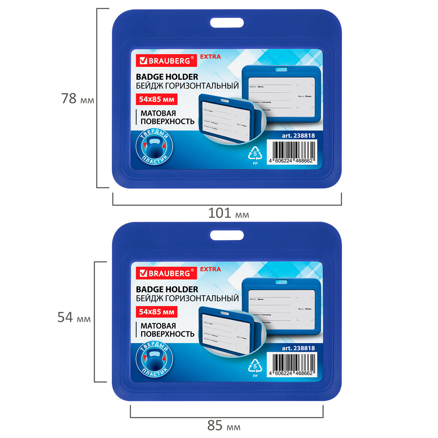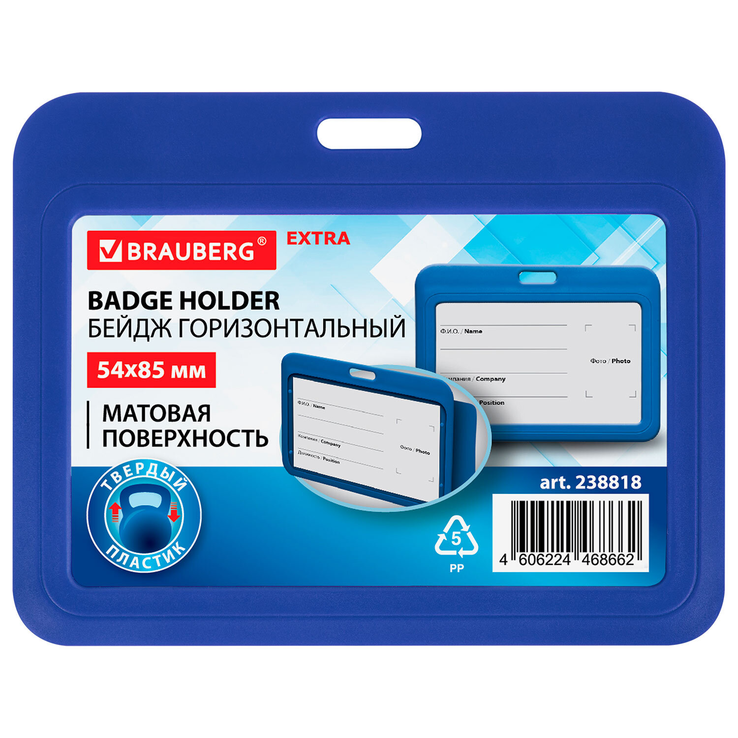О товаре «Бейдж горизонтальный (54х85 мм), синий, МАТОВАЯ ПОВЕРХНОСТЬ, BRAUBERG EXTRA, 238818»