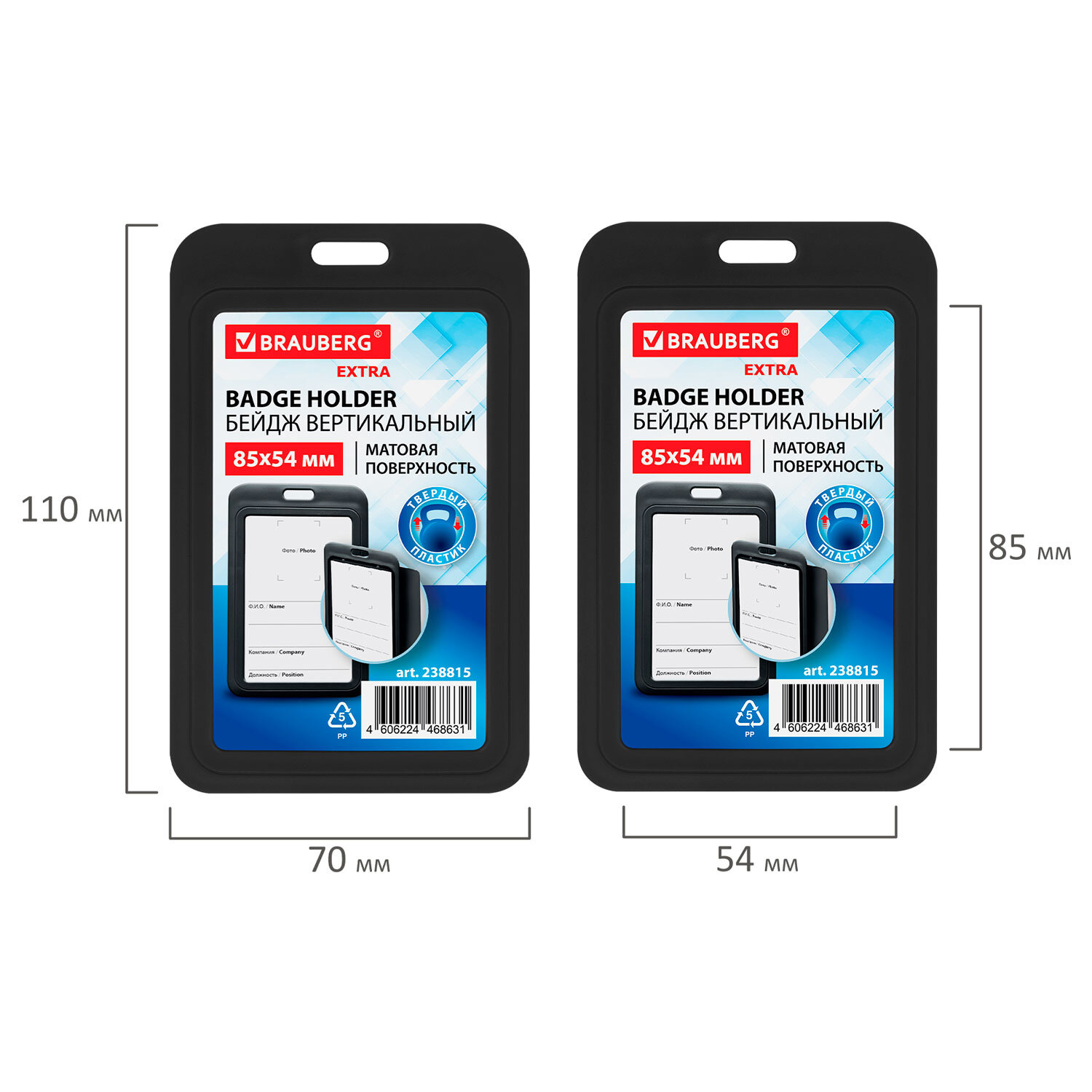 О товаре «Бейдж вертикальный (85х54 мм), черный, МАТОВАЯ ПОВЕРХНОСТЬ, BRAUBERG EXTRA, 238815»