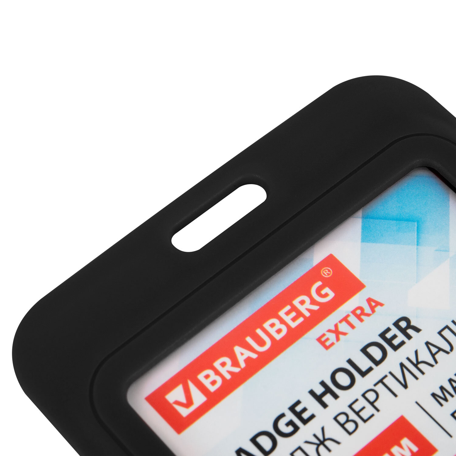 Бейдж вертикальный (85х54 мм), черный, МАТОВАЯ ПОВЕРХНОСТЬ, BRAUBERG EXTRA, 238815