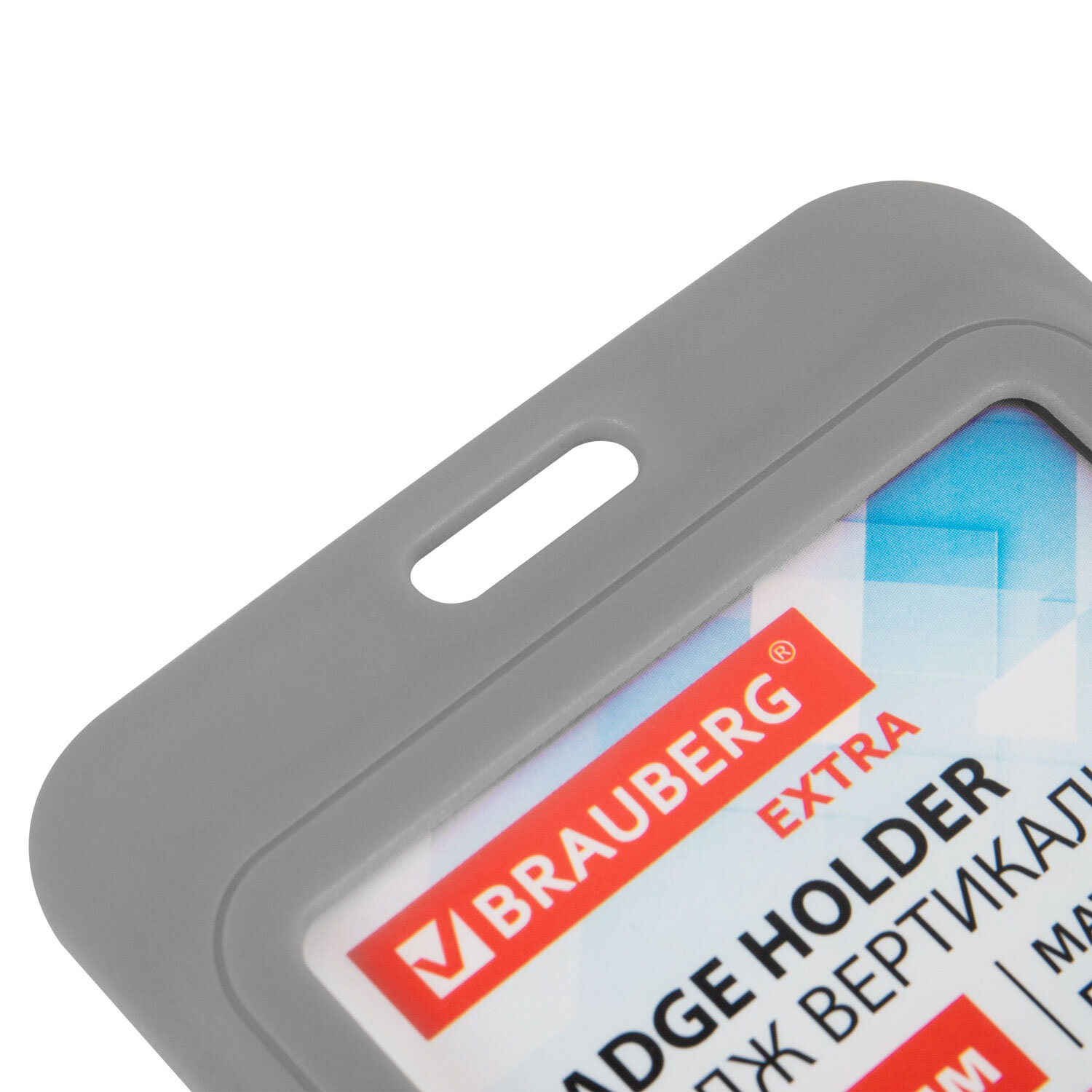 Бейдж вертикальный (85х54 мм), серый, МАТОВАЯ ПОВЕРХНОСТЬ, BRAUBERG EXTRA, 238813