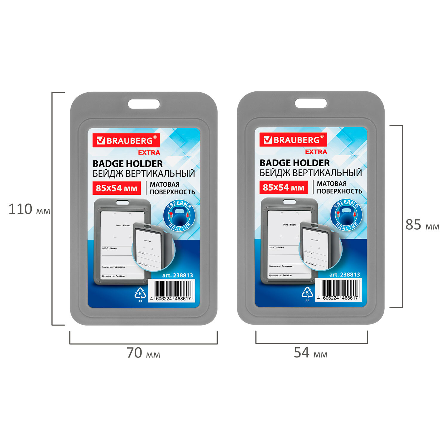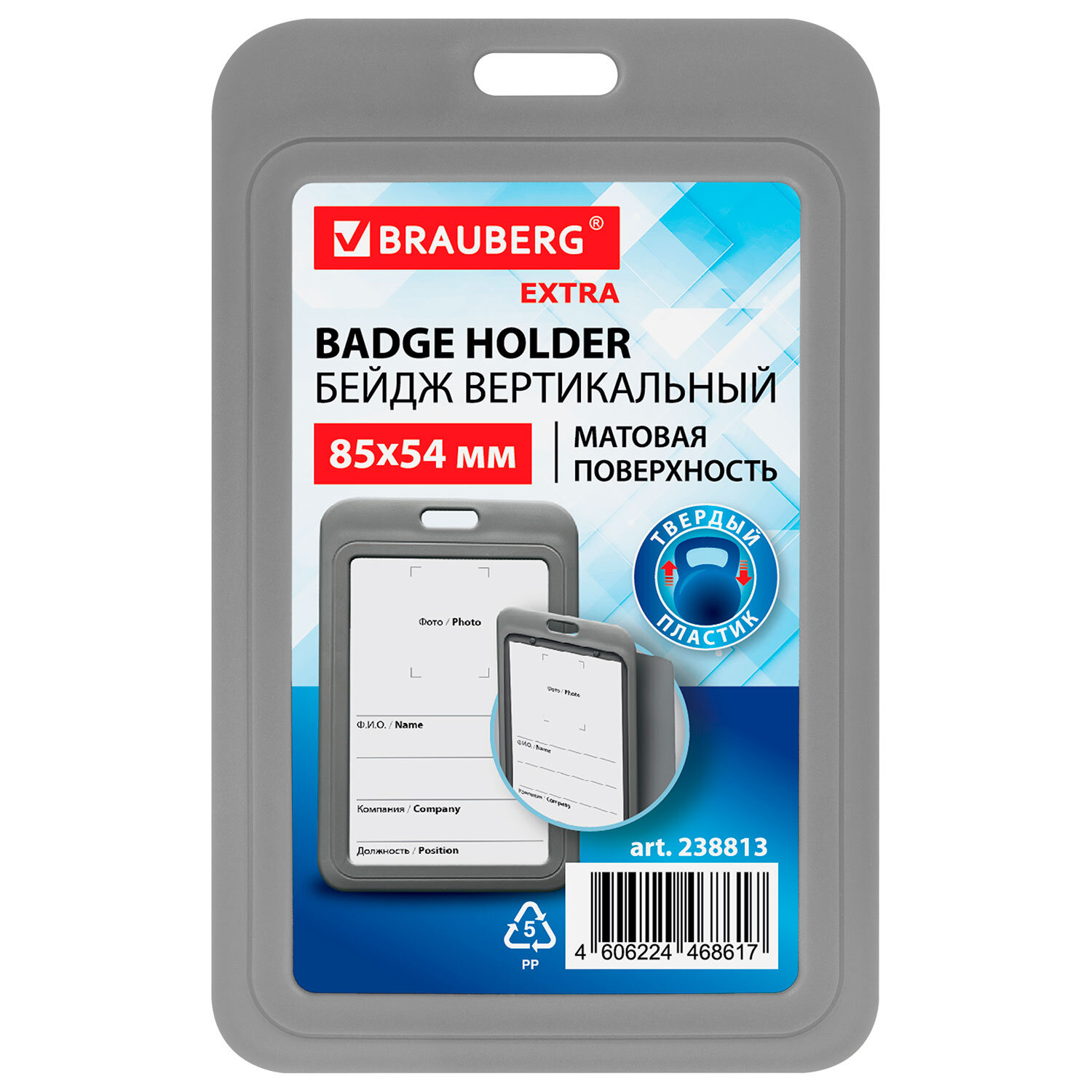 О товаре «Бейдж вертикальный (85х54 мм), серый, МАТОВАЯ ПОВЕРХНОСТЬ, BRAUBERG EXTRA, 238813»