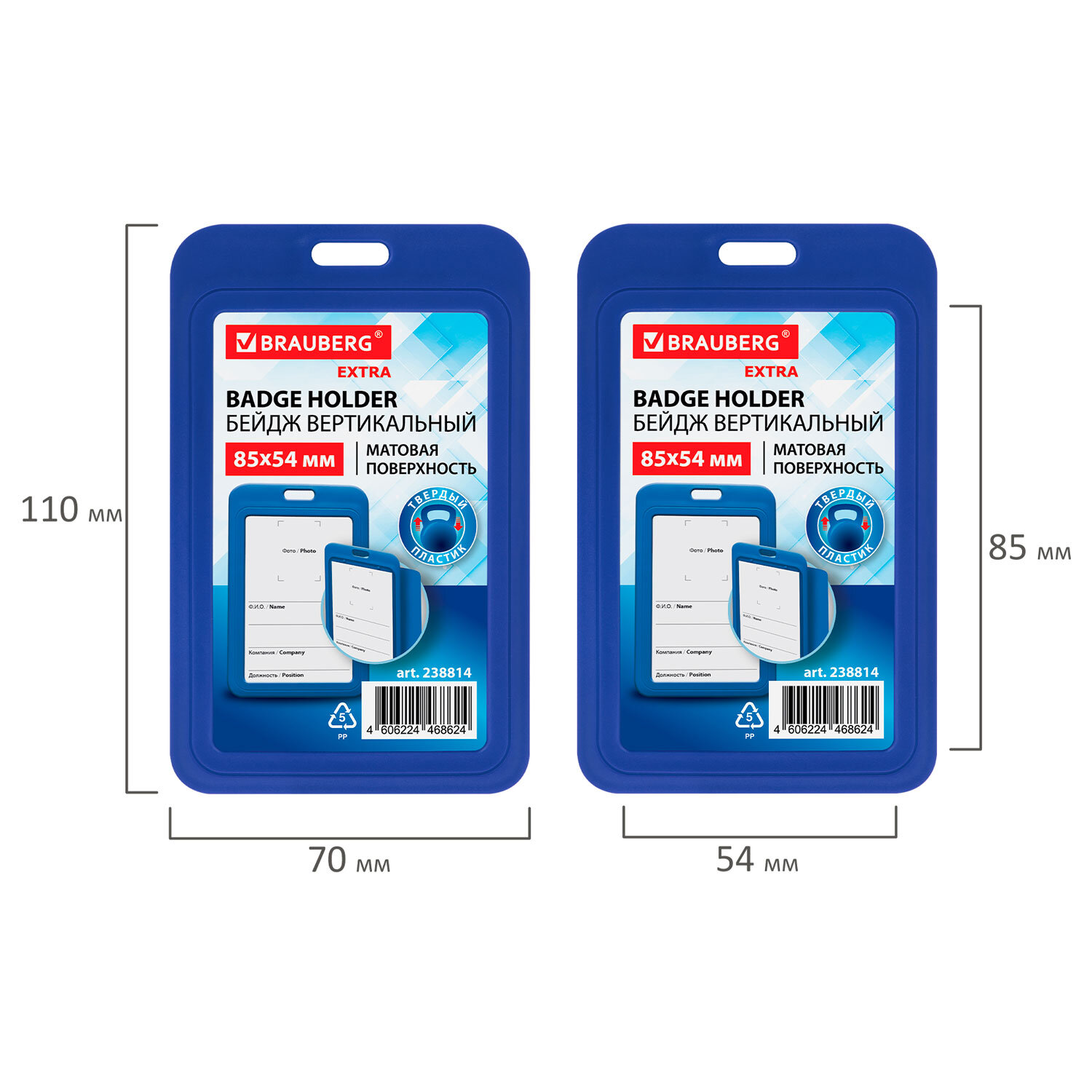 О товаре «Бейдж вертикальный (85х54 мм), синий, МАТОВАЯ ПОВЕРХНОСТЬ, BRAUBERG EXTRA, 238814»