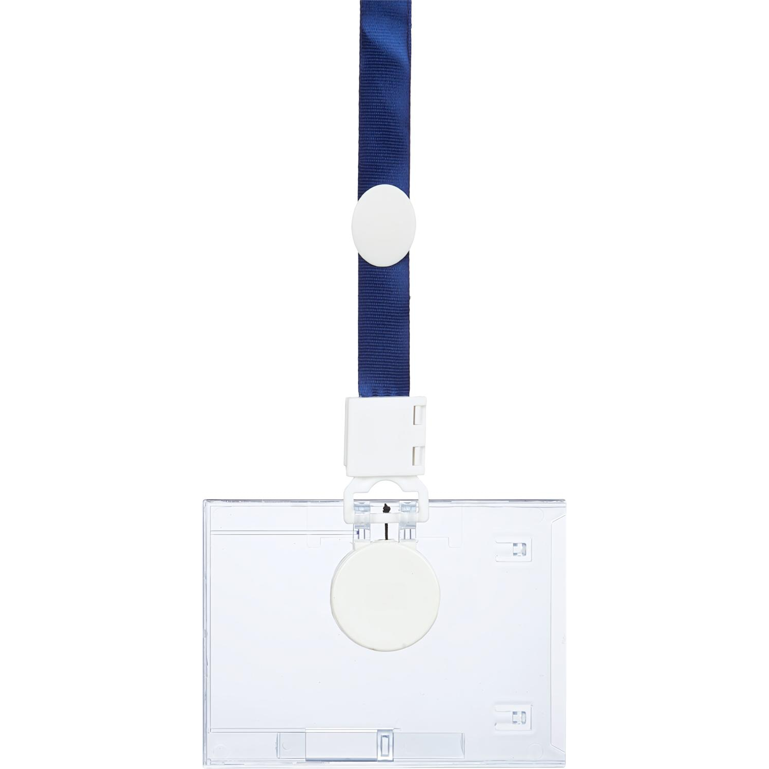 Бейдж ProMega office горизонтальный мультиформатный с рулеткой и тесьмой. Цвет тесьмы -синий. Ширина тесьмы — 10 мм, длина — 40 см. Размер бейджа — 105×74 мм. Изготовлен из жесткого прозрачного акрила. Подходит для ношения именных карточек и пропусков. Рулетка расположена с обратной стороны бейджа.