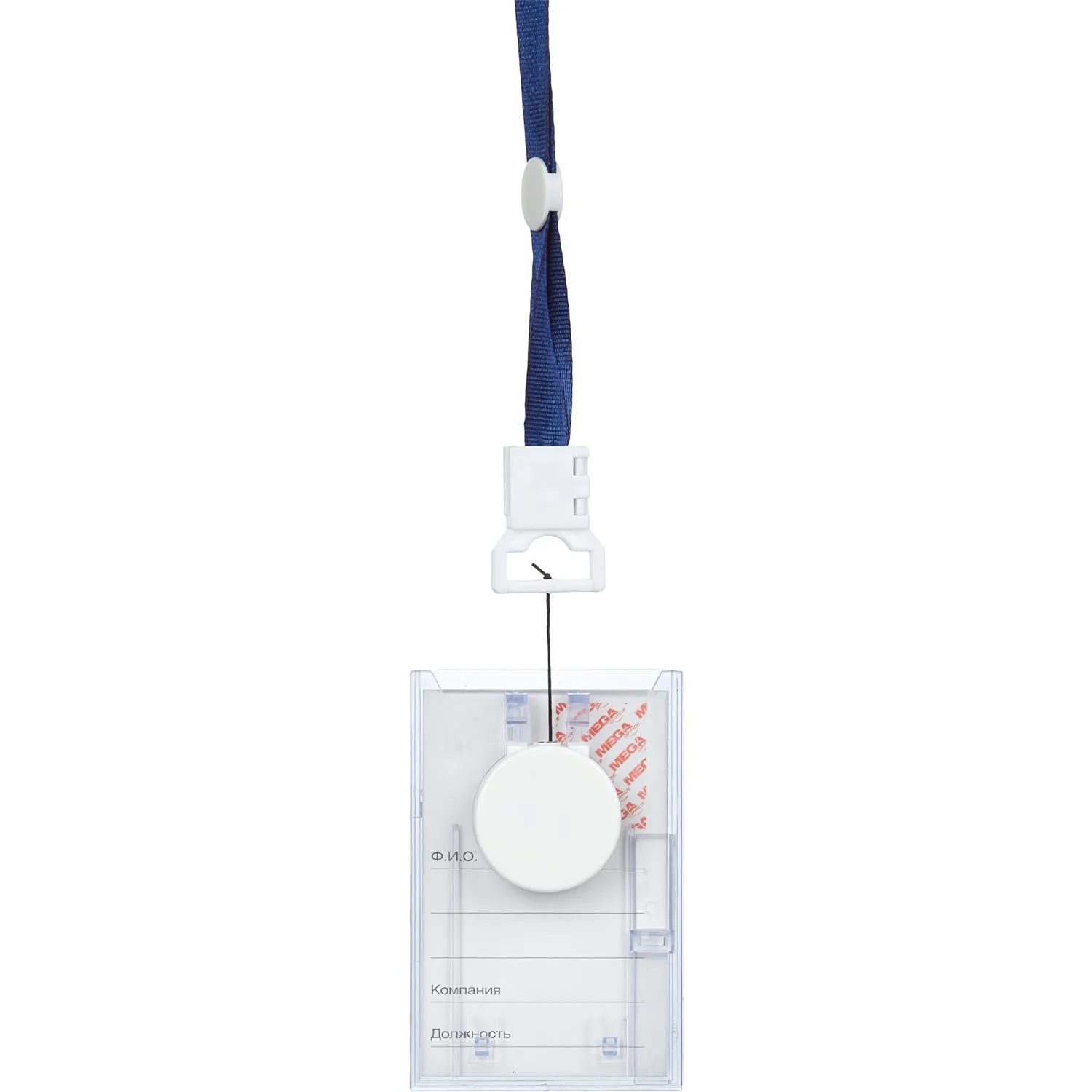 Бейдж ProMega office вертикальный 55х90 мм с держателем-рулеткой и синей тесьмой (размер вкладыша: 54x85)