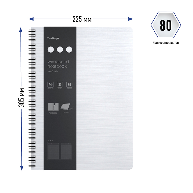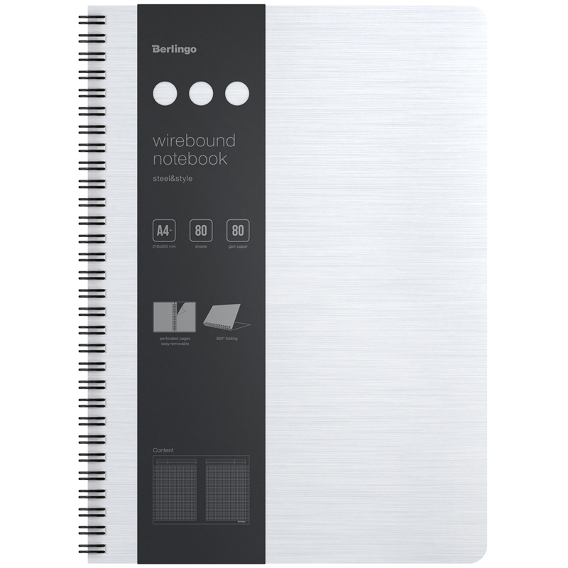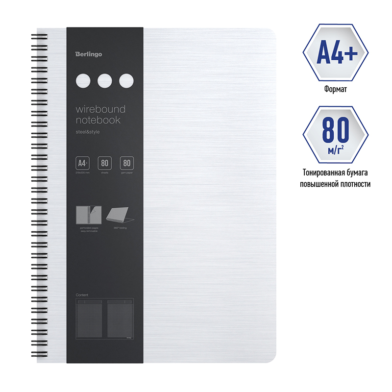 О товаре «Бизнес-тетрадь А4+, 80л., Berlingo "Steel&Style", клетка, на гребне, 80г/м2, пластик. (полифом) обложка, линейка-закладка, белая»